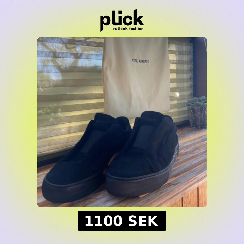 Snygga svarta sneakers från Axel Arigato i mocka med minimalistisk design och diskret logga på sidan. Skorna har platt sula, rund tå och elastisk panel över vristen istället för klassisk snörning. Perfekta för dig som gillar stilrena och moderna skor.