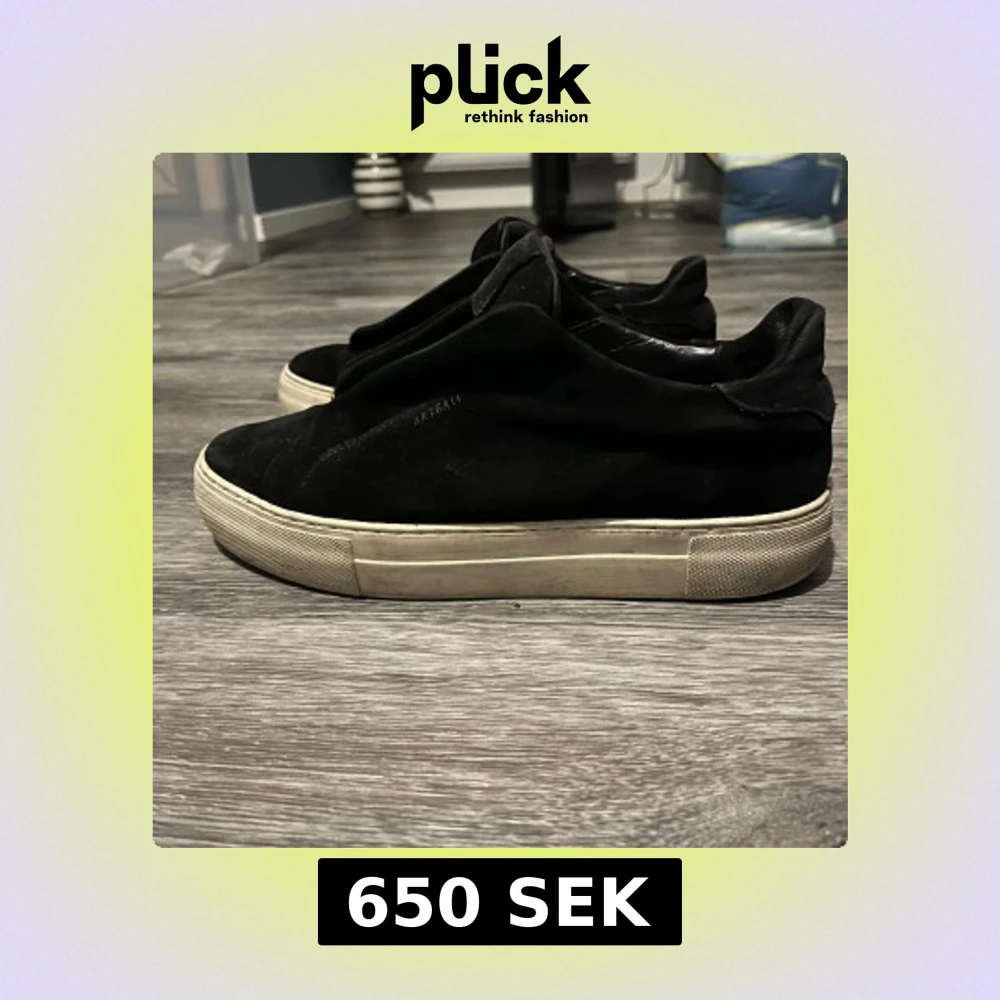 Säljer ett par svarta sneakers från Axel Arigato med stilren design och chunky vit sula. Skorna är i mjuk mocka och har en minimalistisk look utan snörning. Perfekta för dig som gillar cleana och moderna vibes. Liten slitning på ena hälen men ingenting stort. Inhandlade för 2299 och har mycket kvar att ge. Storlek 40 men sitter mer som storlek 41.