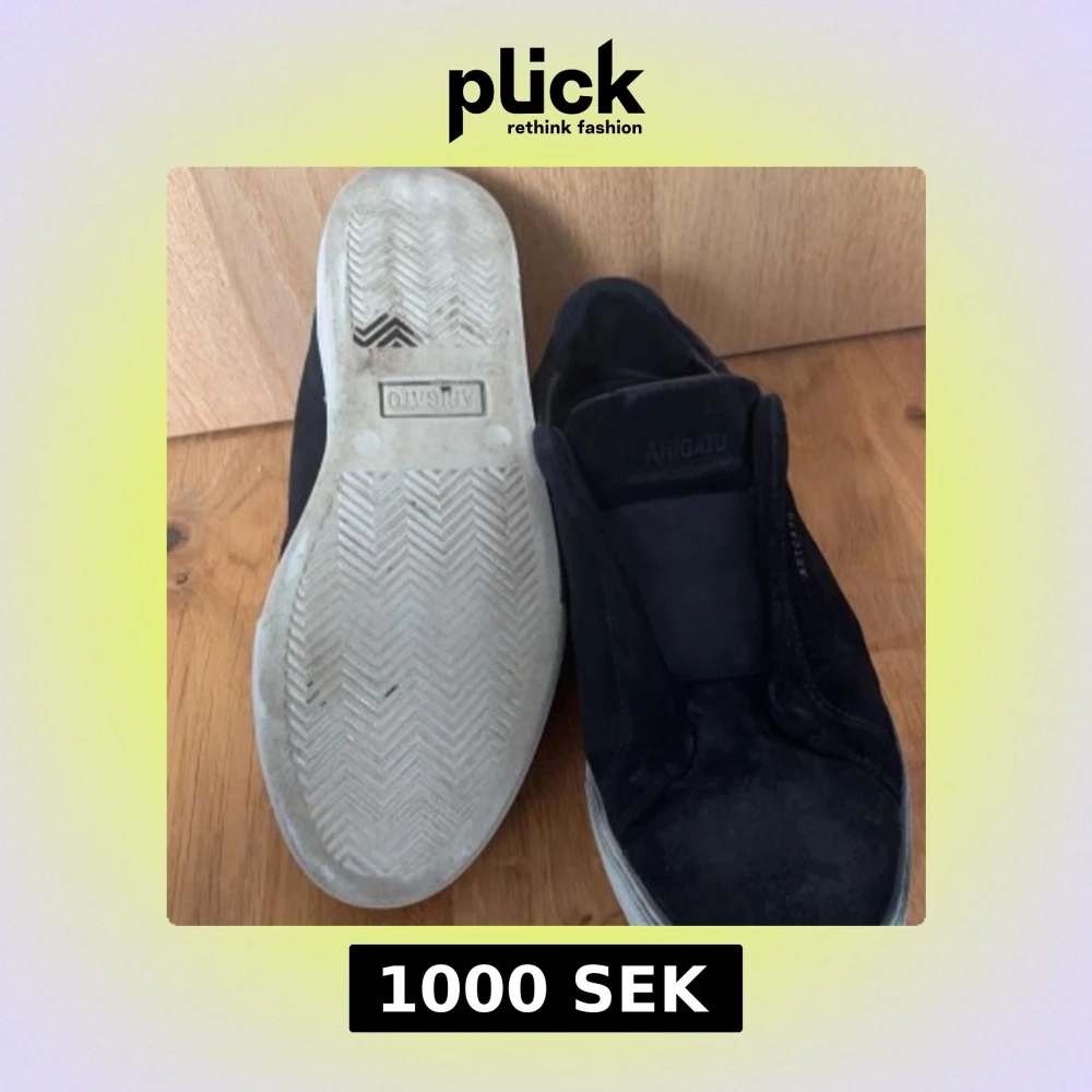Svarta slip-on sneakers från Axel Arigato med ovandel i mocka och vit platt sula. Skorna har elastisk panel över vristen och minimalistisk design med diskret logga på sidan. Box ingår jag säljer dem men det är min väns 😌