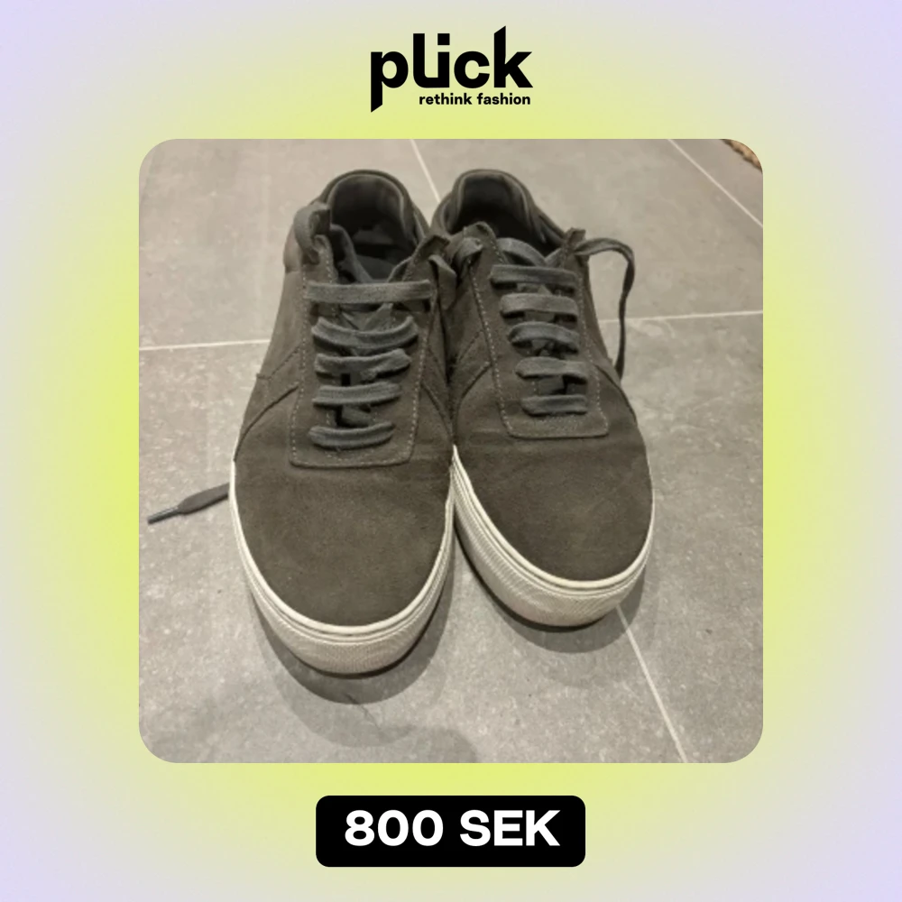 Riktigt fina grå Axel Arigato i storlek 41. Knappt använda men tyvärr en svart fläck på sulan (se sista bilden) som jag ej får bort. Övligt i nyskick.