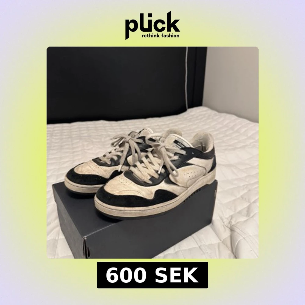 Säljer ett par sneakers från Axel Arigato i svart och vitt. En variant av Dice Lo modellen, nypris 2500, mitt pris 600. Har använts väl under 1,5 år så dom är i använt skick. Storlek 42 men sitter som 43