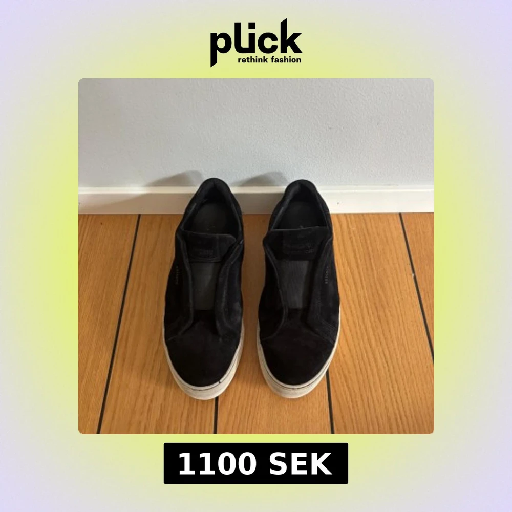 Stilrena svarta sneakers från Axel Arigato i mjuk mocka med vit platt sula. Skorna har minimalistisk design utan snörning och diskret logga på sidan. Perfekta för dig som gillar en clean och modern look. Du får med lådan och allt vad den inehåller. Storlek 42 dock små i storleken. Priset är ej fast och kan ändras vid snabb affär.