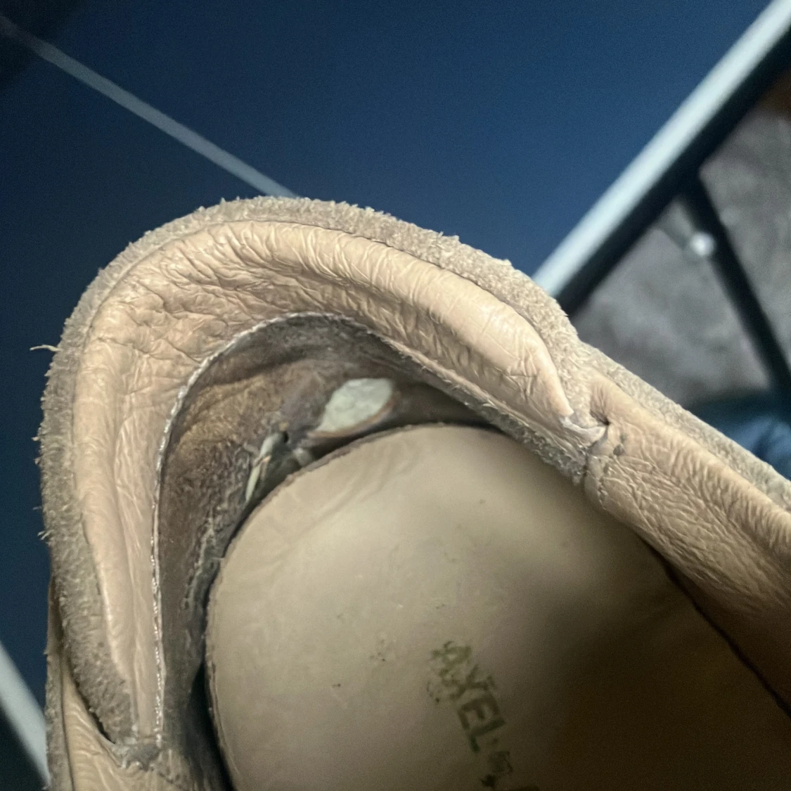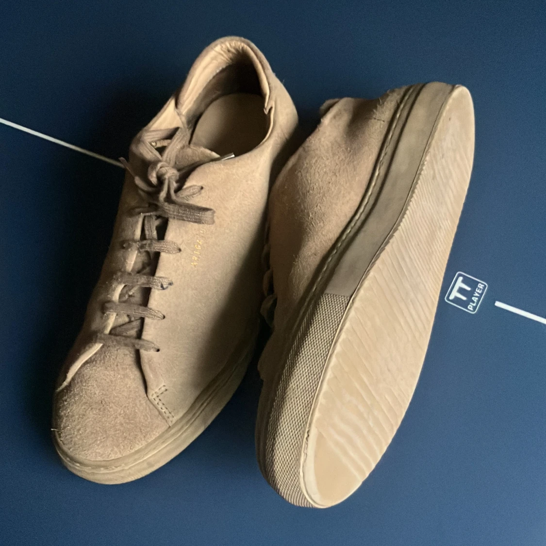 Säljer ett par snygga Axel arigato skor. Säljer för att dom börjar bli lite små. Skorna är i väldigt bra skick förutom ett litet hål som man ser på bilden. Har inte kvar boxen eller påsen.