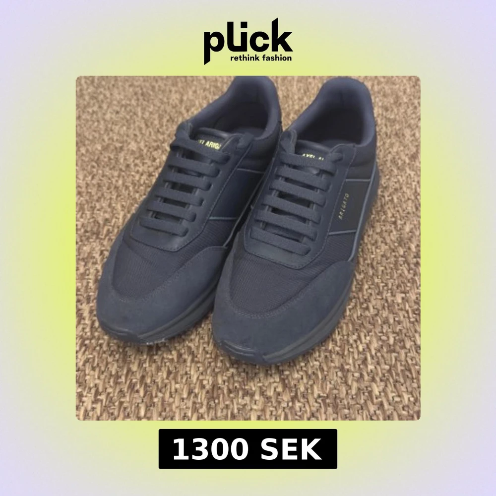 Stilrena svarta sneakers från Axel Arigato med diskreta gulddetaljer på sidan och plösen. Skorna har en mix av mocka och textil, rund tå och platt sula. Perfekta för dig som gillar minimalistisk och modern design.