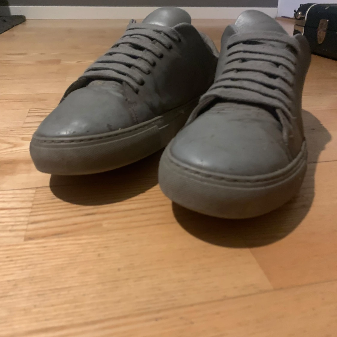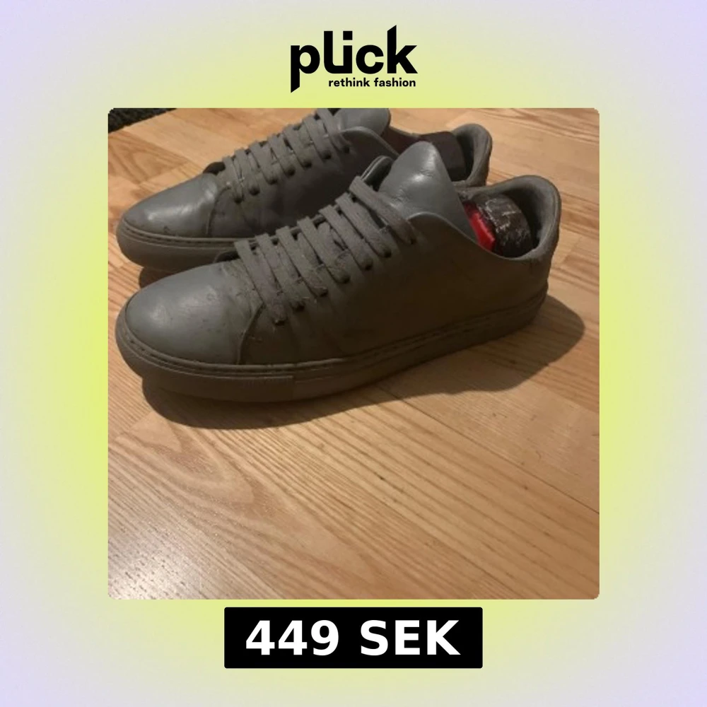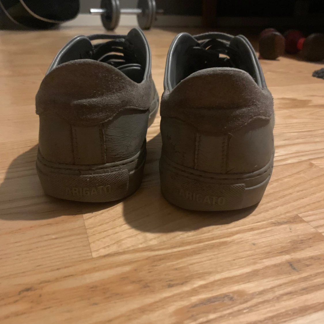 Gråa sneakers från Axel Arigato med stilren design och platt sula. Skorna är i skinn med matchande grå snörning och diskret logga bak på hälen. Perfekta för dig som gillar minimalistisk och clean stil.