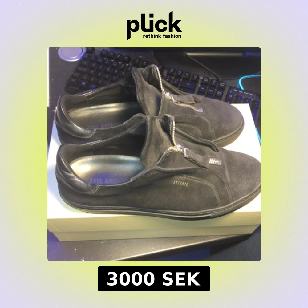 Snygga svarta sneakers från Axel Arigato zip i mocka med dragkedja och diskret logga på sidan. Perfekta för en stilren look.