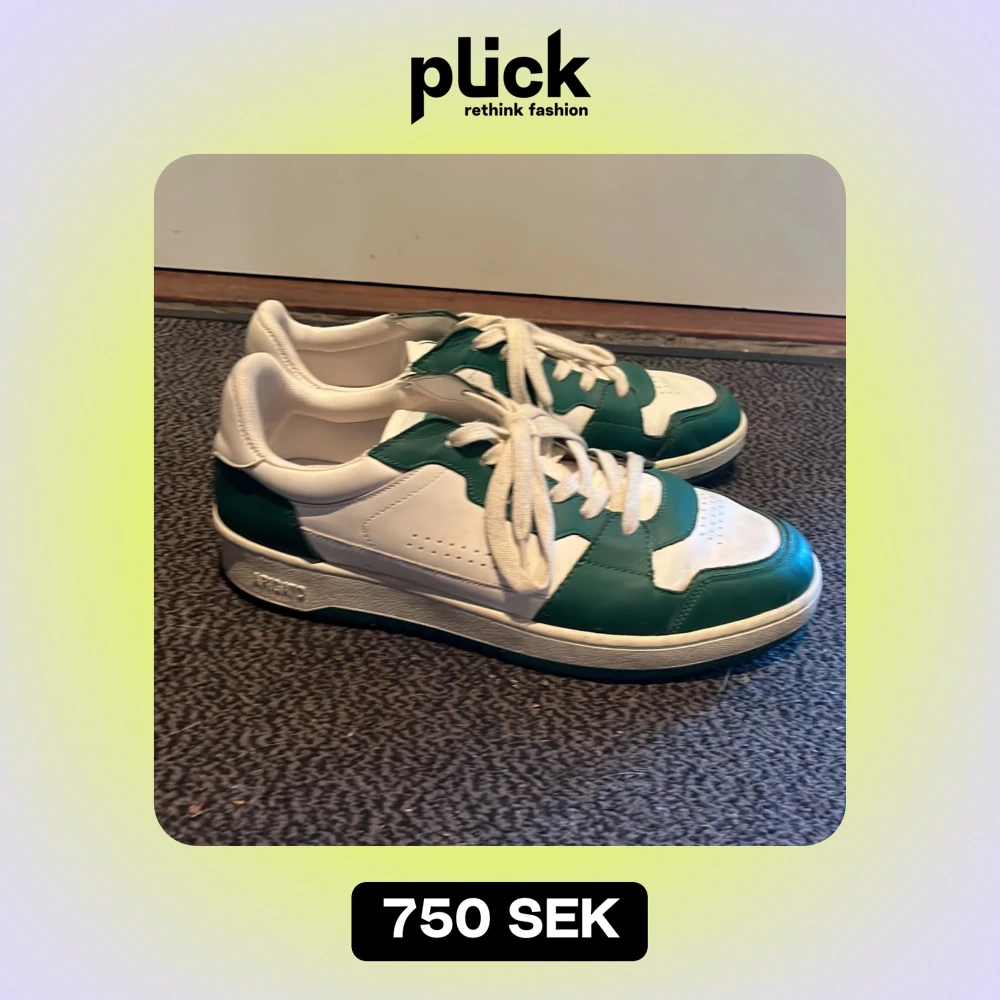 Säljer ett par snygga sneakers från Axel Arigato i grönt och vitt. De har en klassisk design med snörning och är i bra skick. Perfekta för både vardag och festliga tillfällen. Storlek 43.