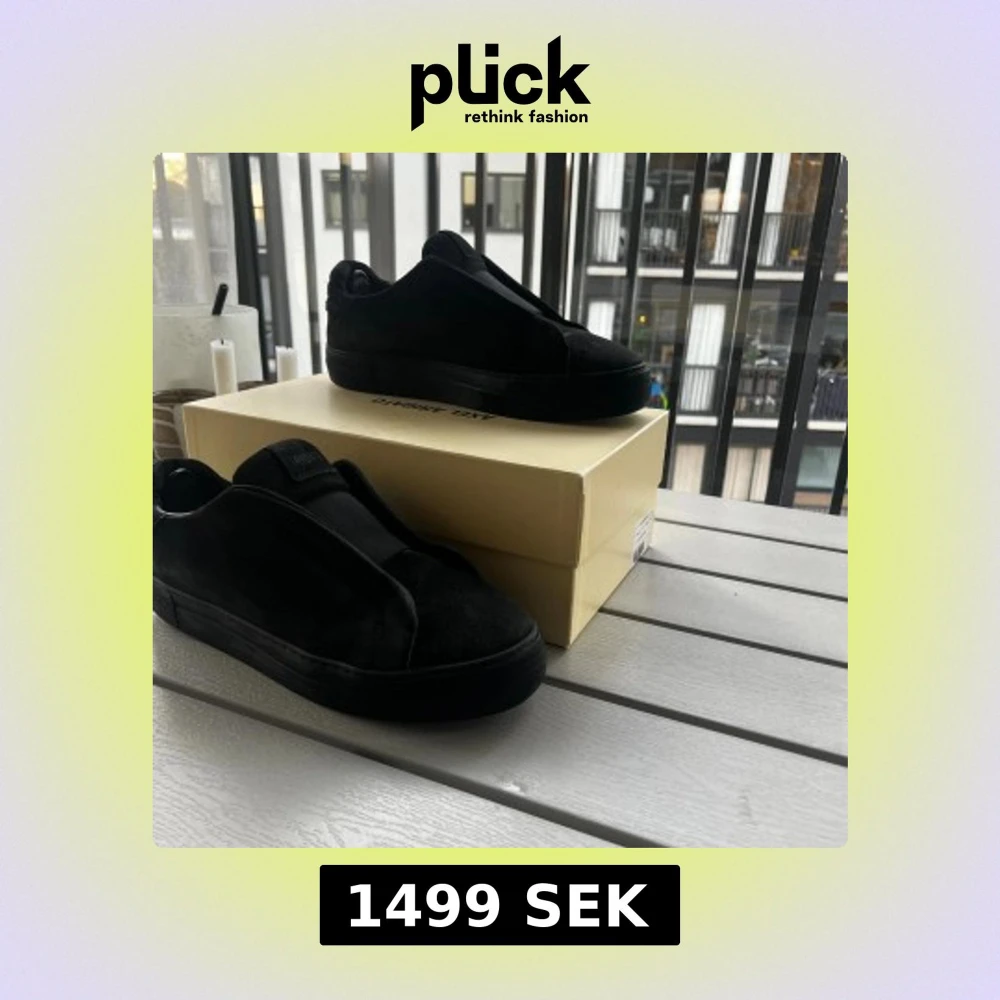 Stilrena svarta sneakers från Axel Arigato i mocka med minimalistisk design. Skorna har platt sula, rund tå och elastisk panel istället för klassisk snörning. Perfekta för dig som gillar en clean och modern look.