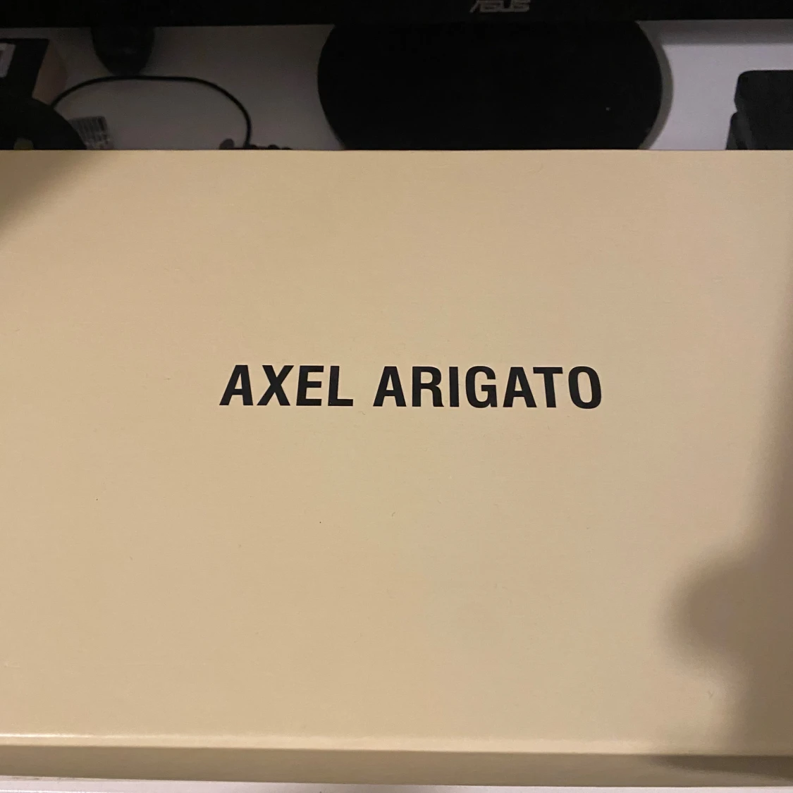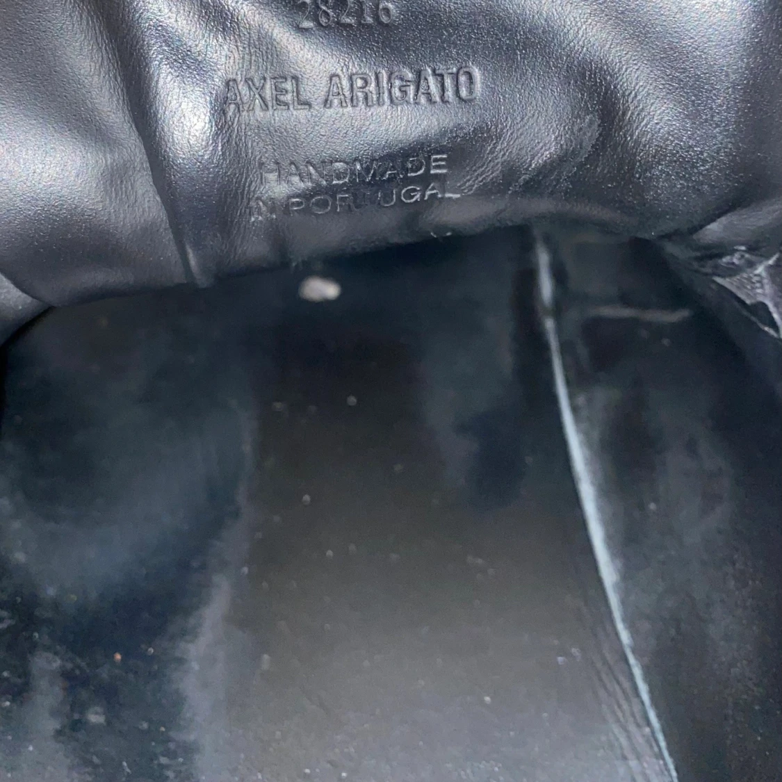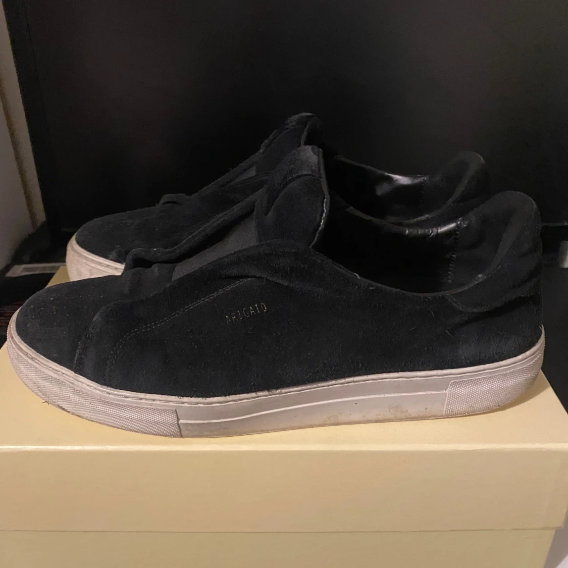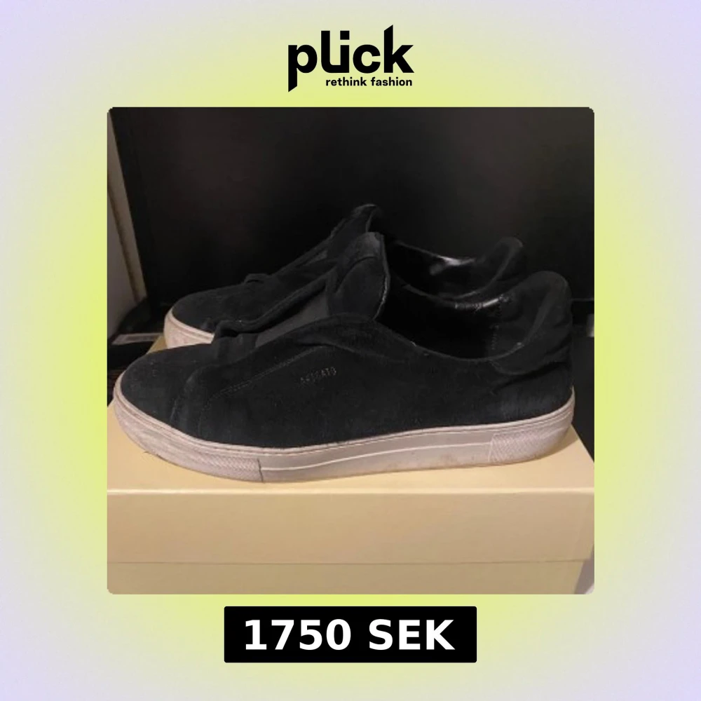 Svarta sneakers från Axel Arigato med stilren design och vit platt sula. Skorna är handgjorda i Portugal och har en ovandel i mocka med diskret logga på sidan. Insidan är fodrad med mjukt skinn för extra komfort. Perfekta för dig som gillar minimalistisk stil.