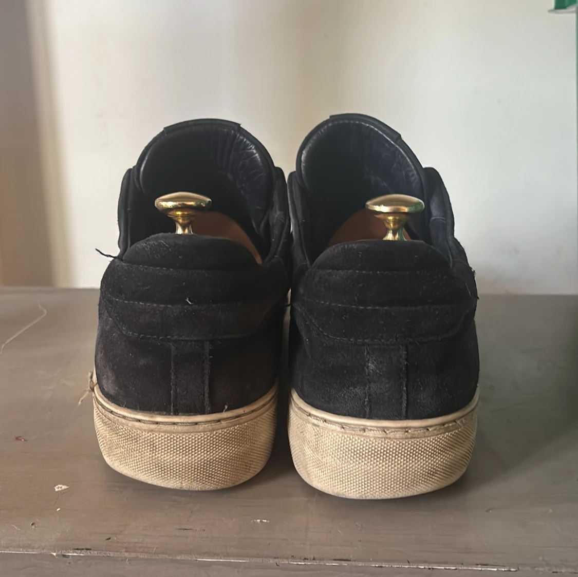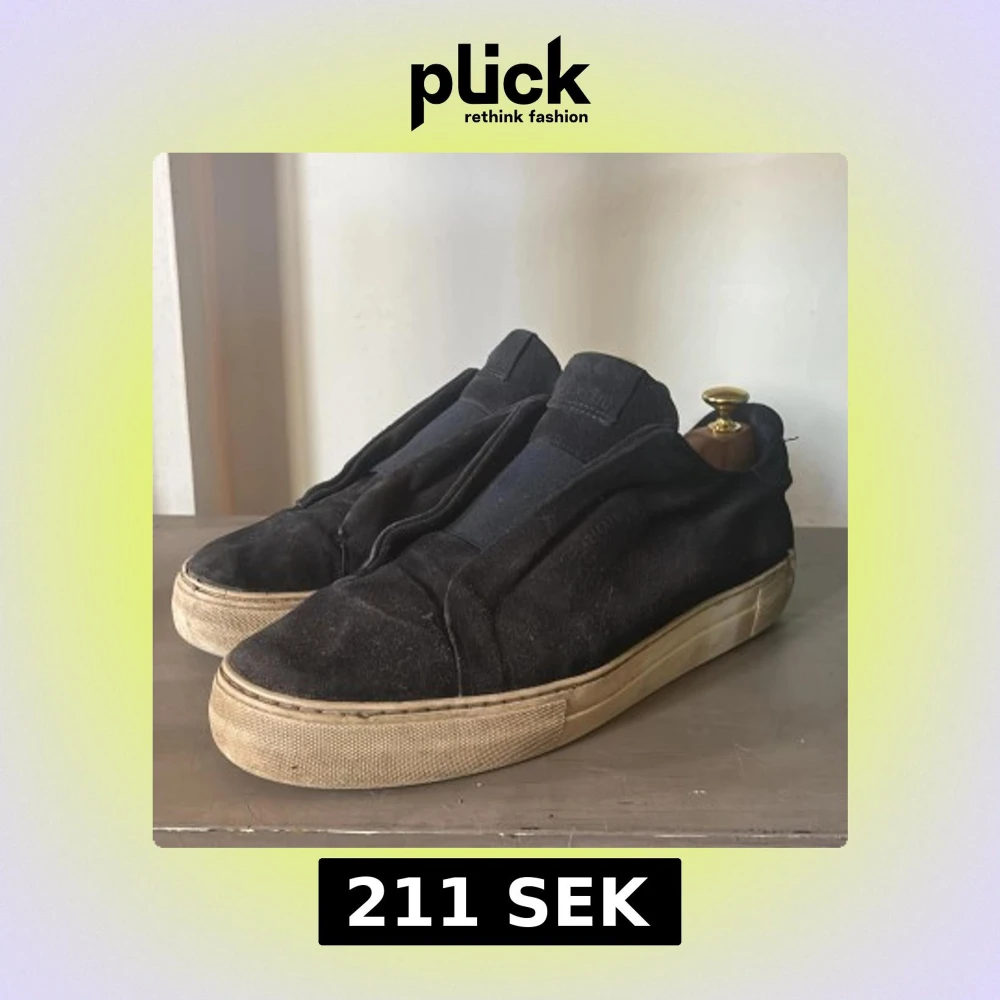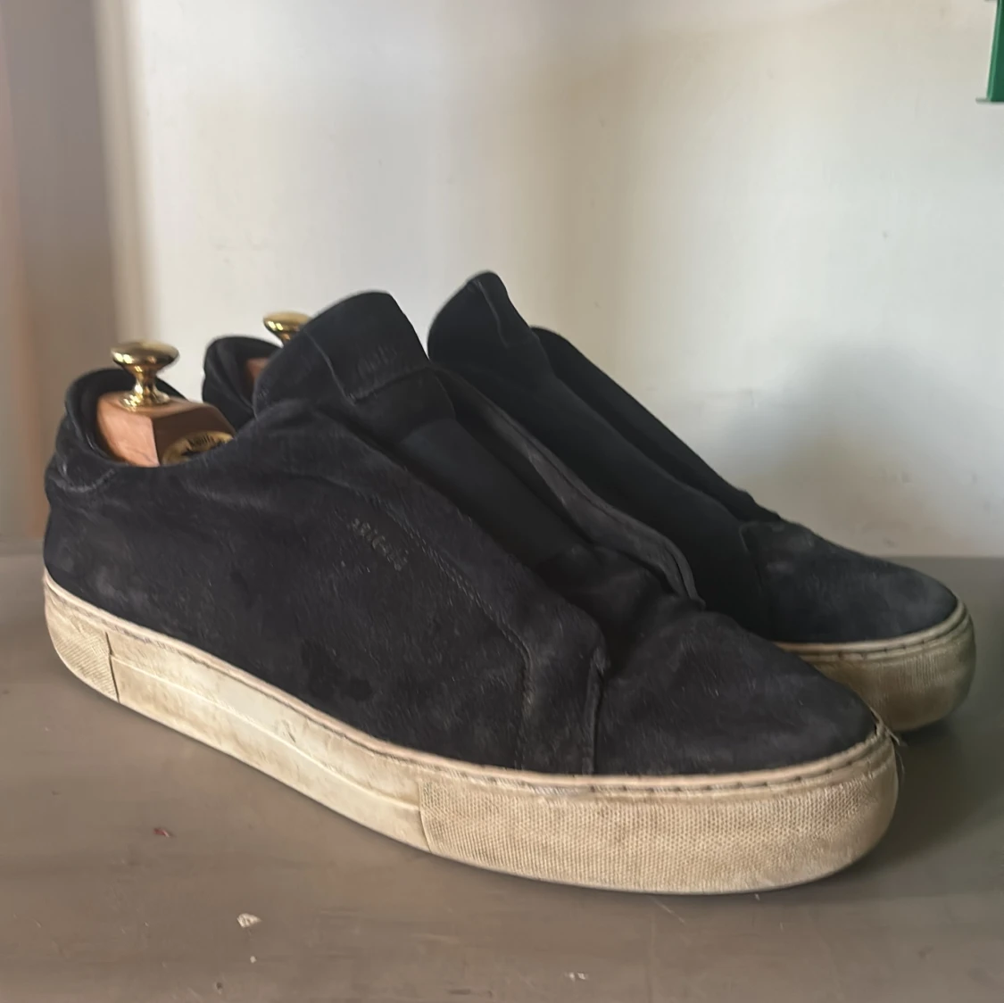 Marin blå sneakers från Axel Arigato i mjuk mocka med bred resår över vristen istället för klassisk snörning. Skorna har en chunky vit sula och minimalistisk design, perfekt för dig som gillar stilrena och moderna vibes.