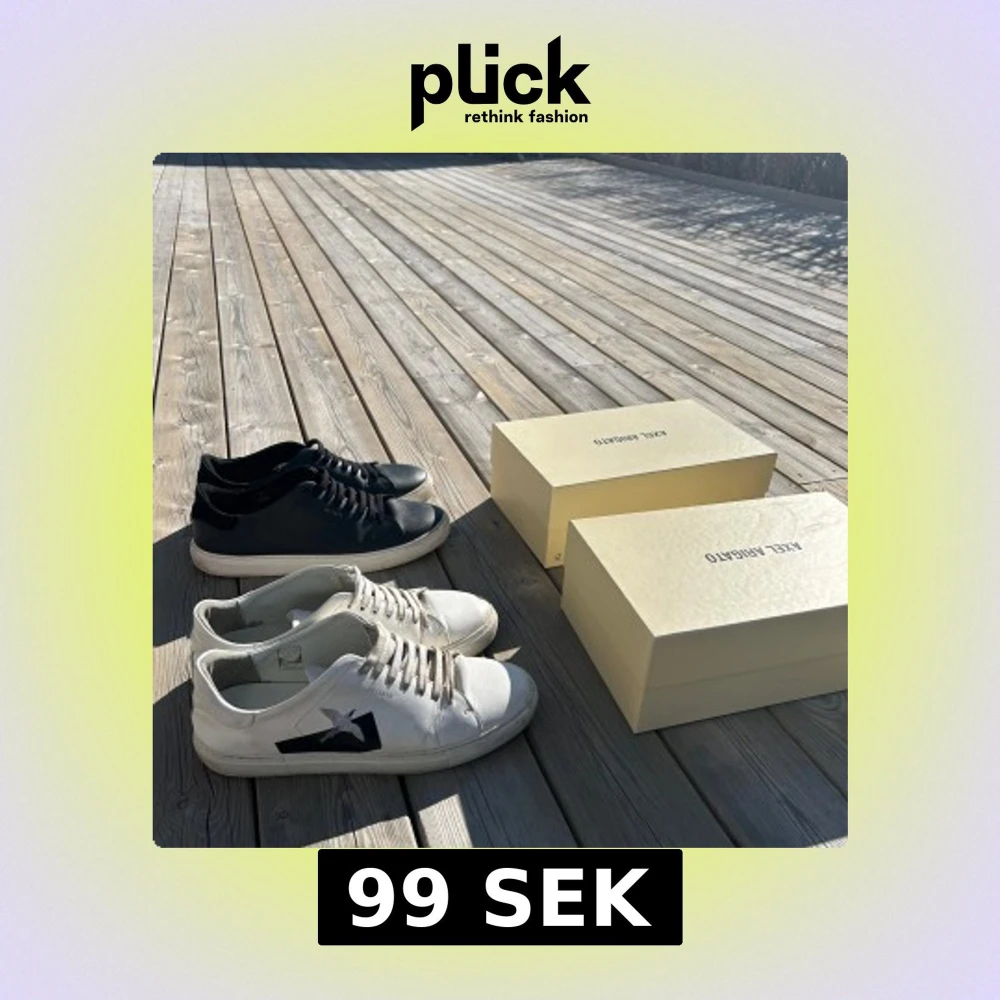 Två par stilrena sneakers från Axel Arigato. Ett par i svart med vit sula och ett par i vitt med svart detalj på sidan. Båda paren har snörning och är perfekta för en casual look. Dem svart är i väldigt bra skicka (nästan nya) de vita är bra men lite mer använda. 499 för de svarta (strlk 46) och 299 för de vita strlk (45). Båda paren har box och allt. Båda för 700.