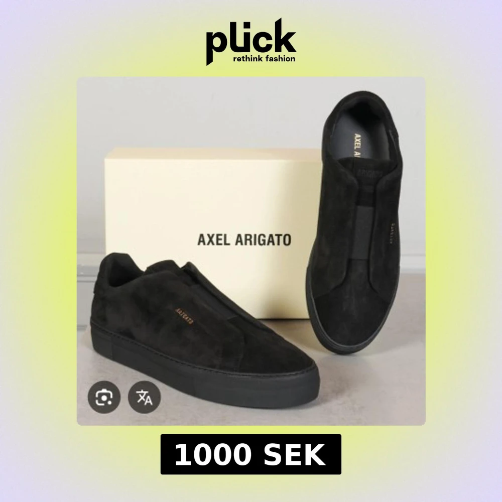 Säljer ett par svarta sneakers från Axel Arigato i stilren design. Skorna har en låg profil, rund tå och är tillverkade i mocka med diskret logga på sidan. Perfekta för dig som gillar minimalistisk stil. Orginal kartong och påse följer med