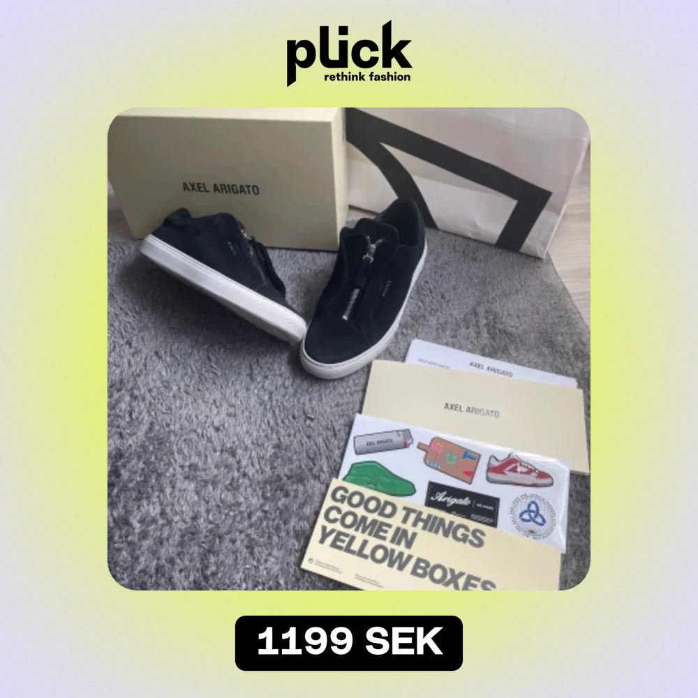 Säljer nu mina fräscha Axel arigato skor, skorna är i väldigt bra skick och sparsamt använda som ni kan se på bilderna! Endast en deffekt och det är att sulorna inuti skon måste bytas! Vid köp medföljs box samt Axel arigato kortet!