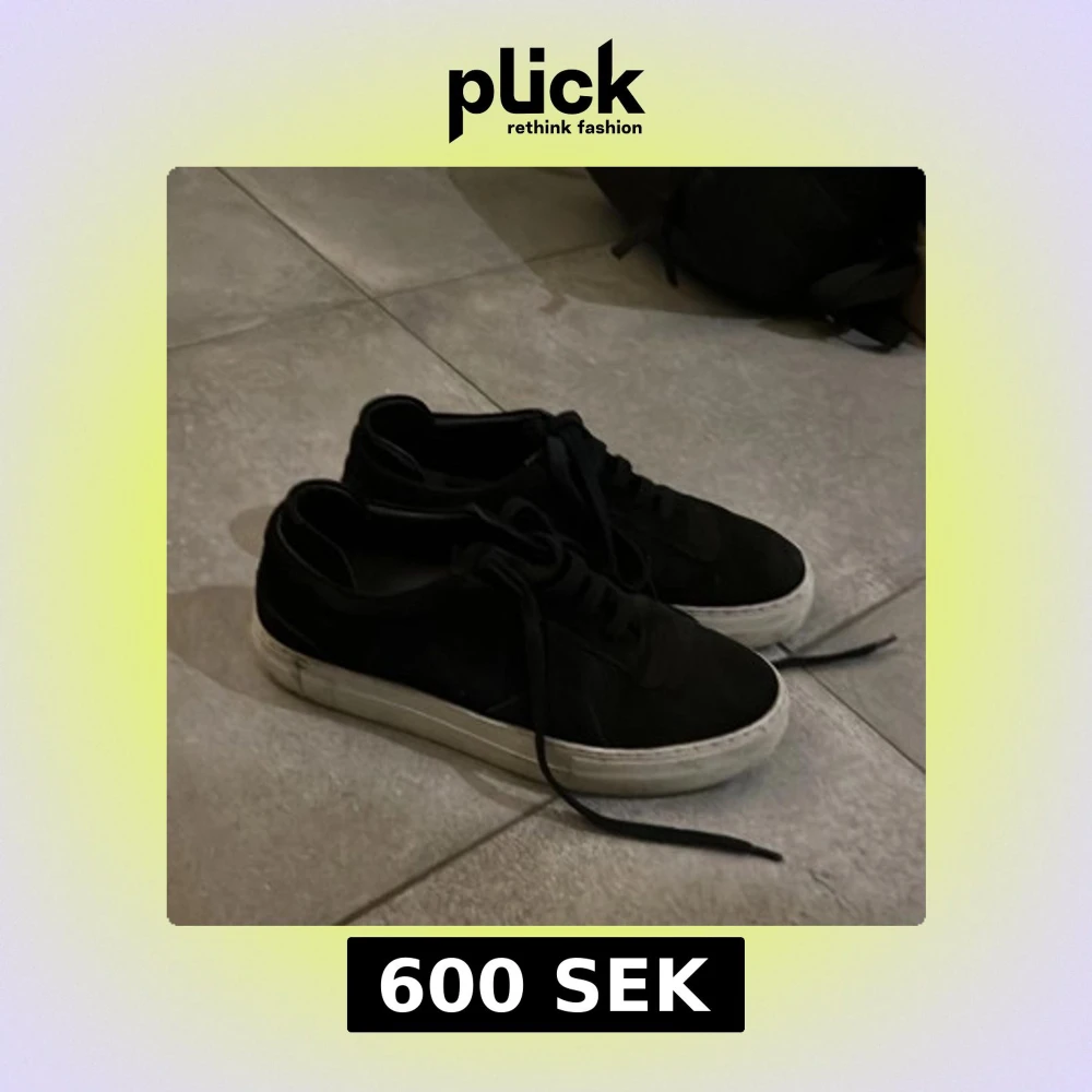 Snygga svarta sneakers med vit sula och snörning. Perfekta för en avslappnad stil. De har en klassisk design men ganska nötta då de är väldigt använda. Skriv vid intresse