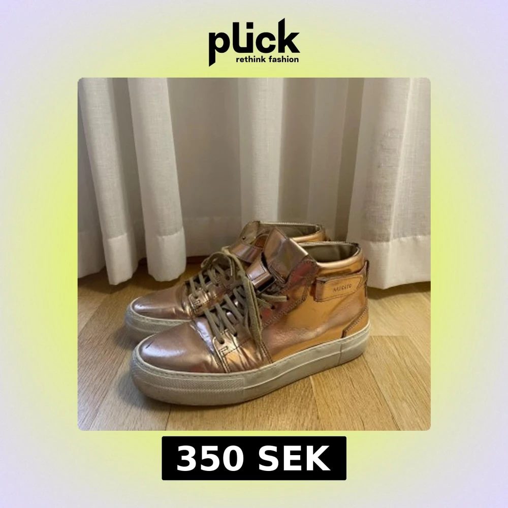 Säljer ett par snygga metallic roséguld sneakers från Axel Arigato. Skorna har hög kant, snörning och vit platt sula. Ganska så använda men inga större slitage än vad som visas på bilder! 🩷