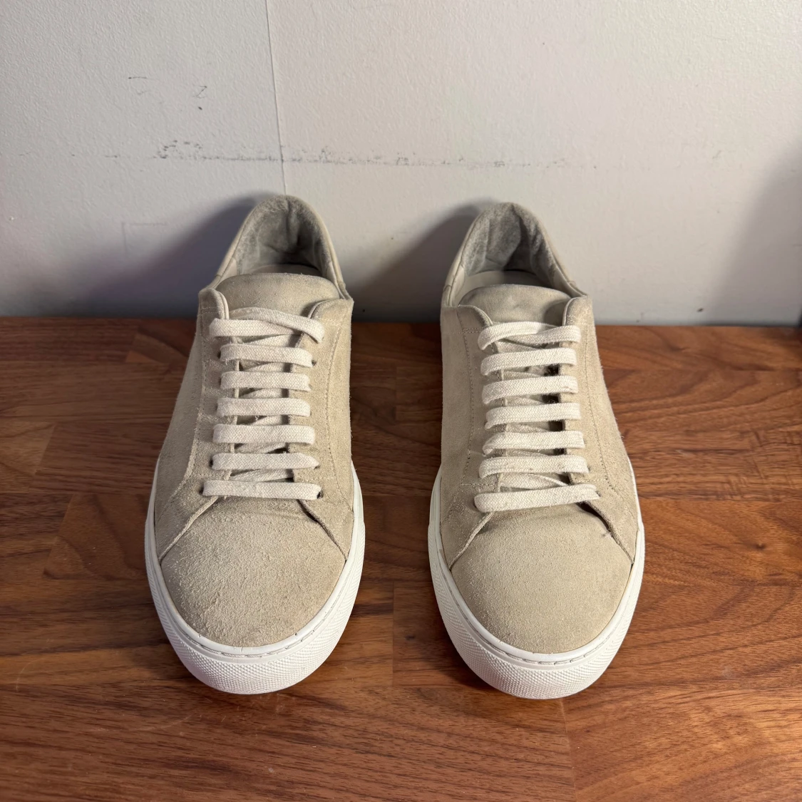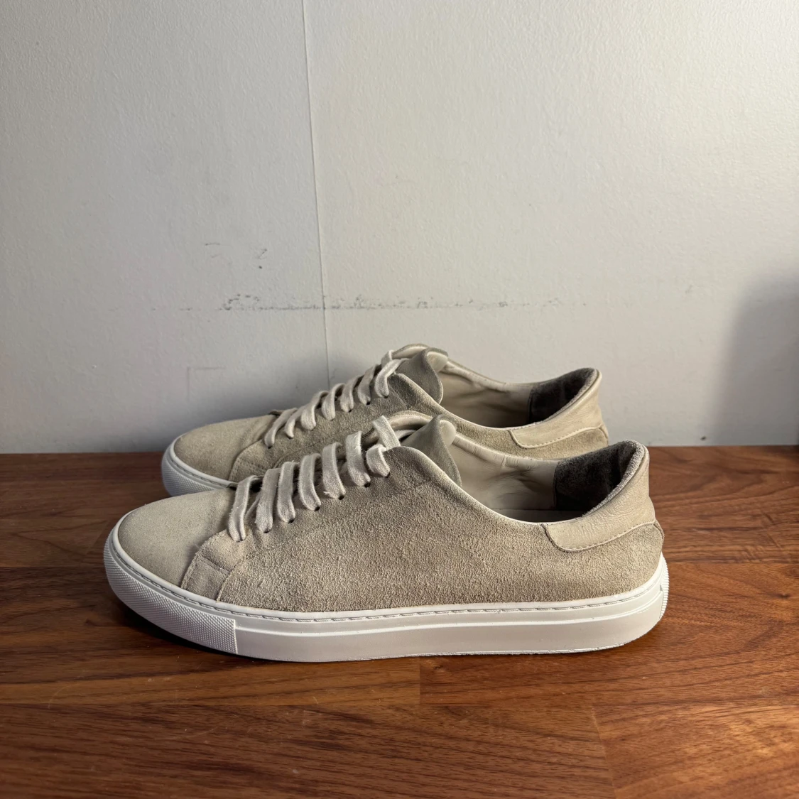 Säljer ett par stilrena grå/beige Axel Arigato skor i mocka. Passar perfekt ny till sommaren och varmare väder