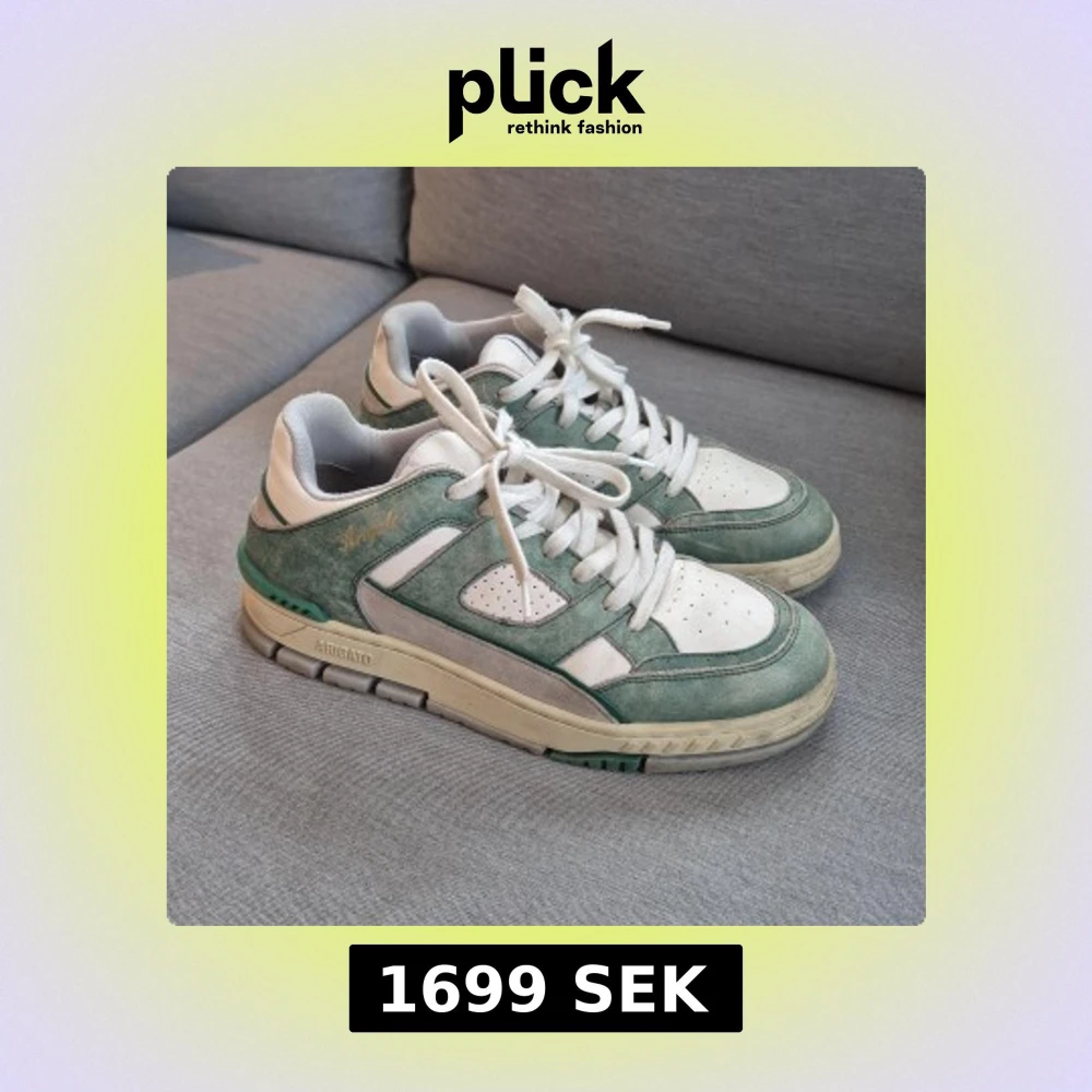 Snygga sneakers från Axel Arigato i storlek 42. Nypris 3500. Skorna har en fräsch kombination av grönt och vitt med detaljer i mocka och skinn. Klassisk rund tå, platt sula och snörning framtill. Perfekt för dig som gillar stilrena och trendiga sneakers med cool retrovibe.