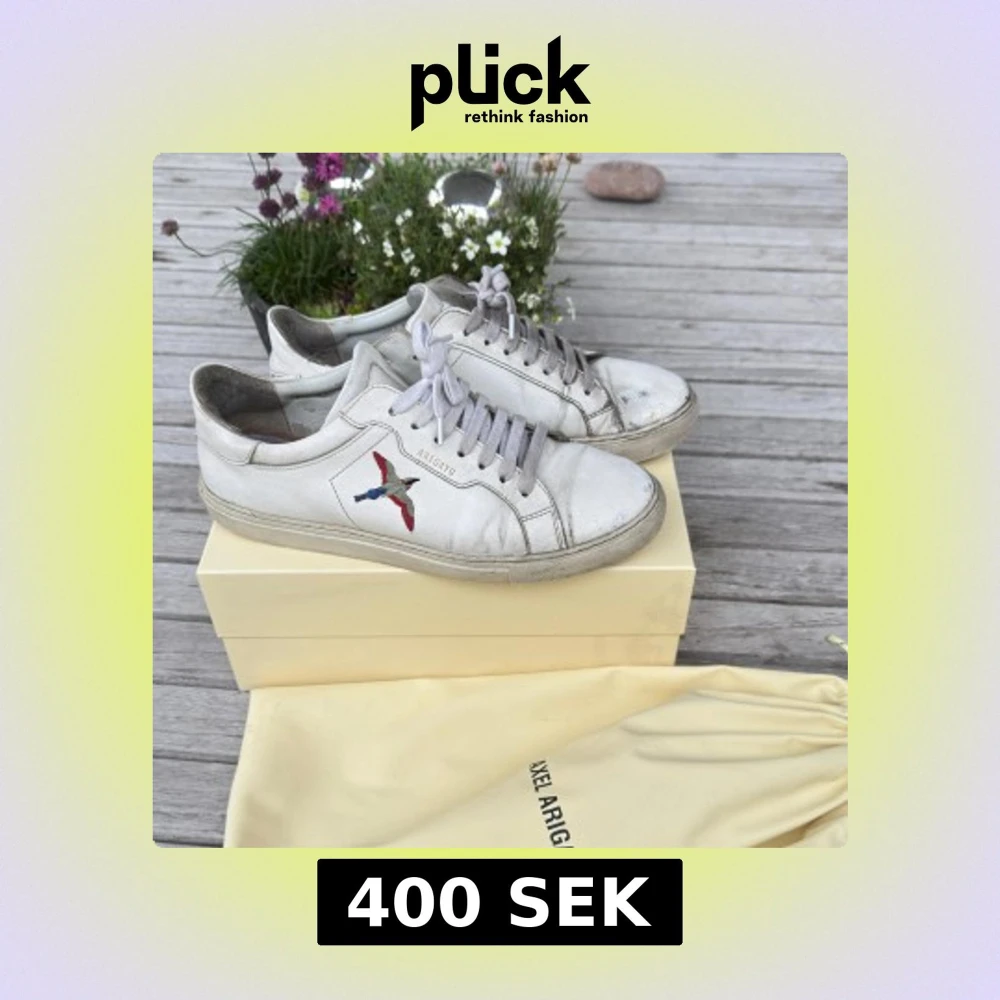 Säljer ett par riktigt feta vita skor från Axel Arigato med fågel på sidan. Man kan se att skorna är använda men det går absolut att rusta upp dem enkelt ifall man vill! Perfekta för dig som gillar stilrena och trendiga skor. Pris kan diskuteras vid snabb affär!