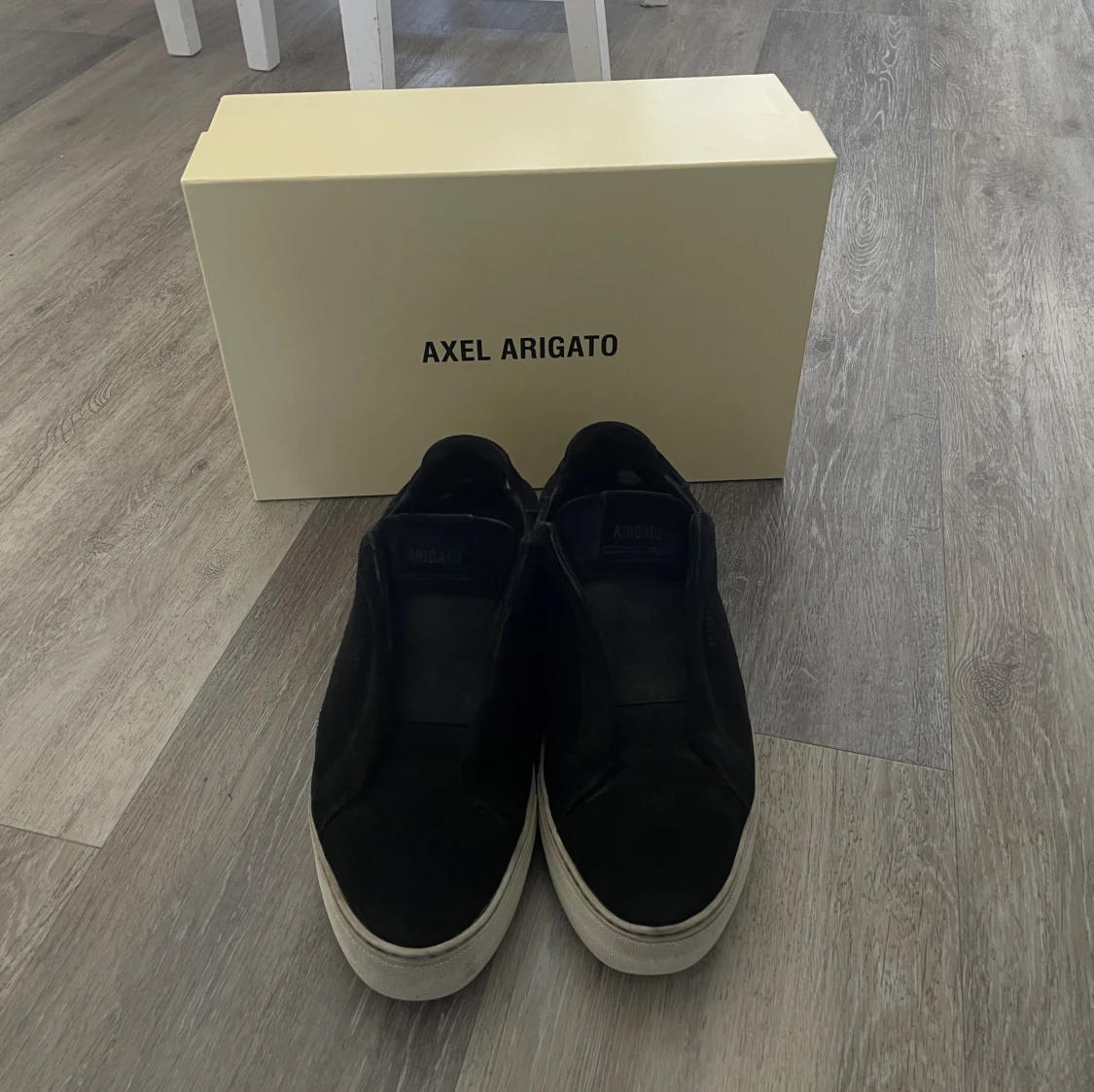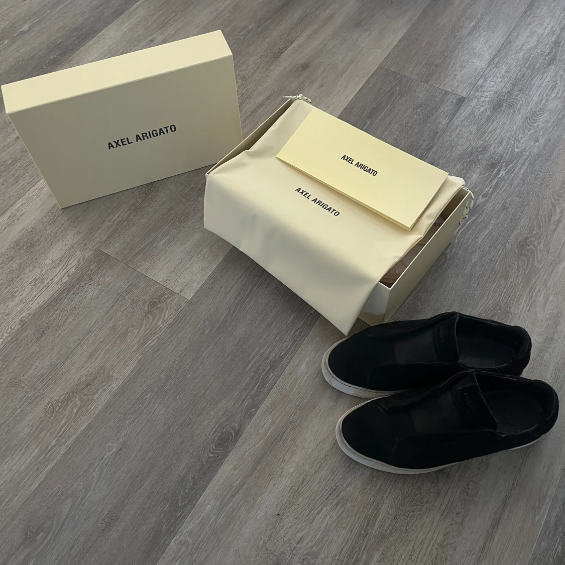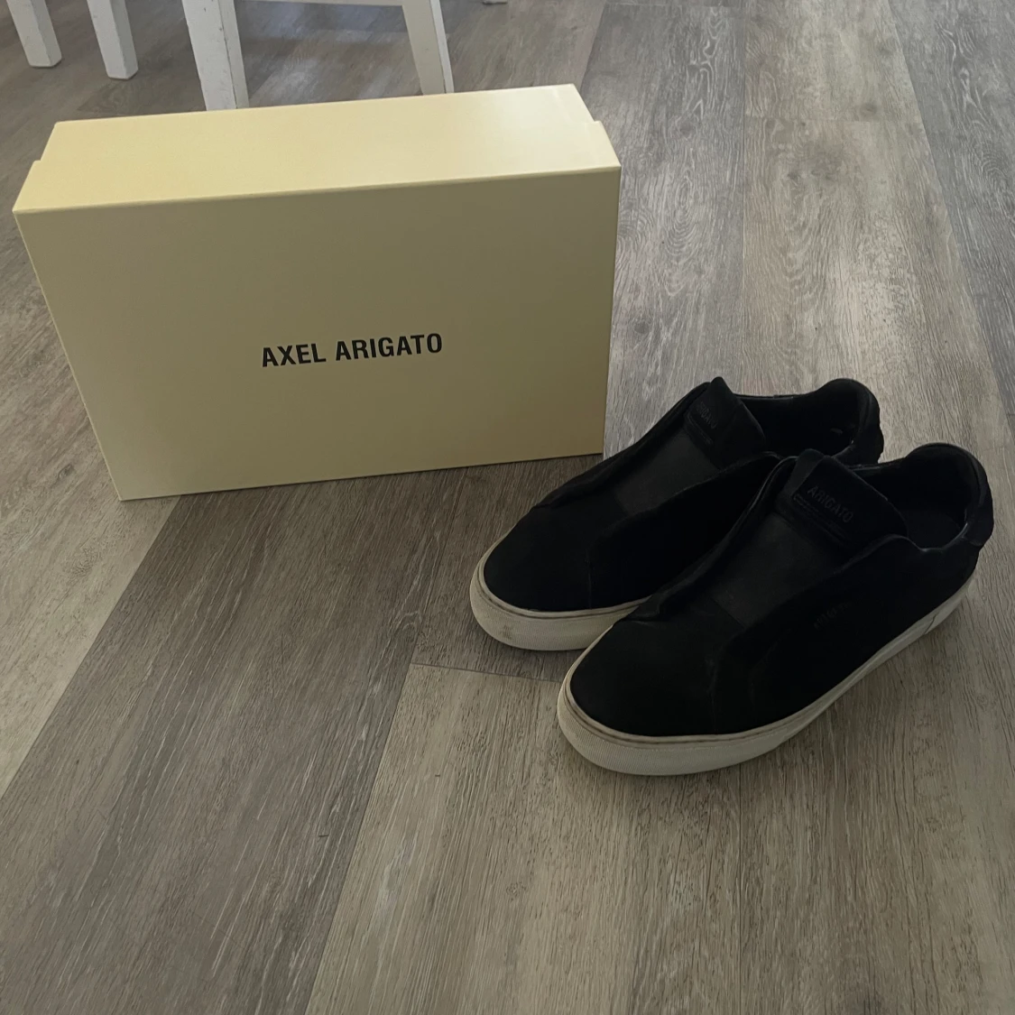 Axel Arigato skor laceless är dessa skor och skorna är i bra skick då jag har tagit hand om det! Går att skickas med spårningnummer då köparen står för frakten
