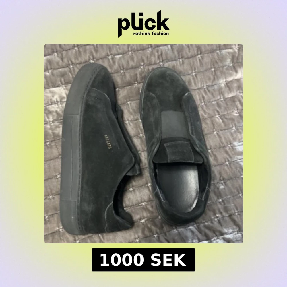 Säljer ett par av Axel Arigato laceless i storlek 42 fast passar även 43, skorna är i fint skick, förvänta dig inte att de är helt nya, tyvärr finns inte lådan kvar men dustbag finns. Vid frågor och funderingar är de bara att hojta till.