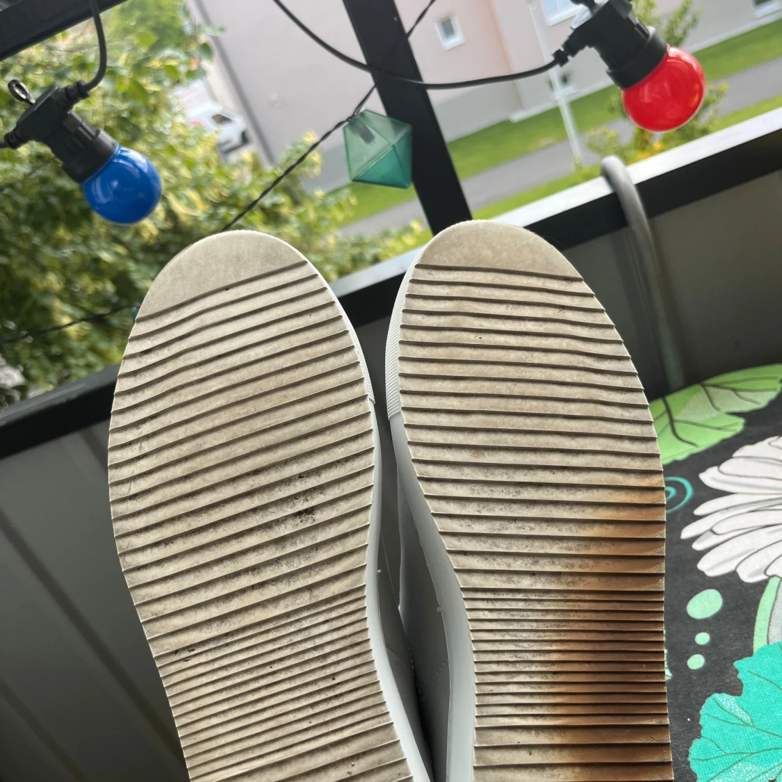 Billigt pris då ena har en missfärgning på sulan. Det går att måla över men inget jag lägger tid på. Annars nästan helt nya. Hör av dig vid minsta fråga😊