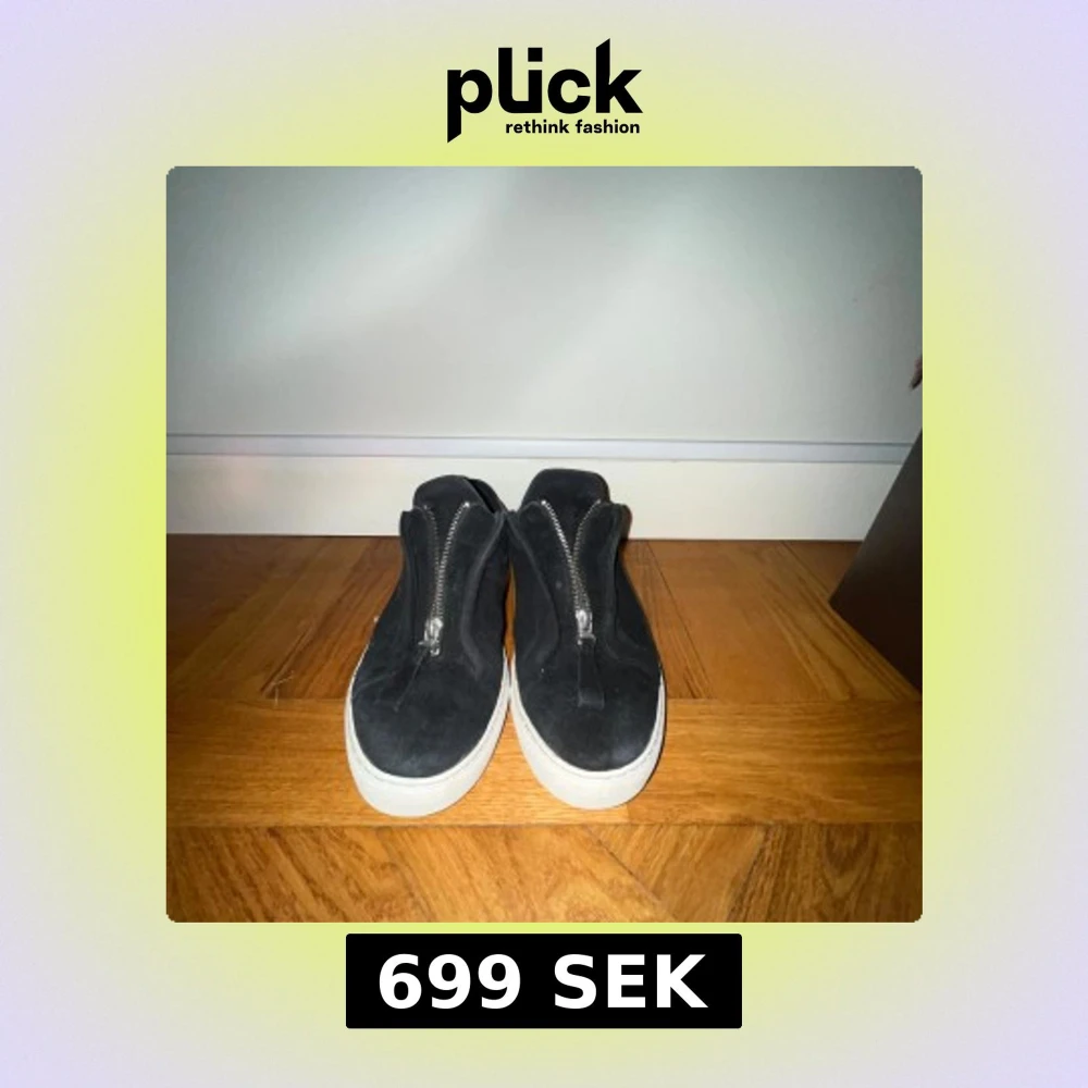 Snygga svarta sneakers från Axel Arigato i mocka med dragkedja framtill. Skorna har en vit sula som ger en stilren kontrast. Perfekta för en trendig look. Skorna är i använt skick men inget som påbörjar skorna. Nypris: 2800kr, mitt pris: 699kr