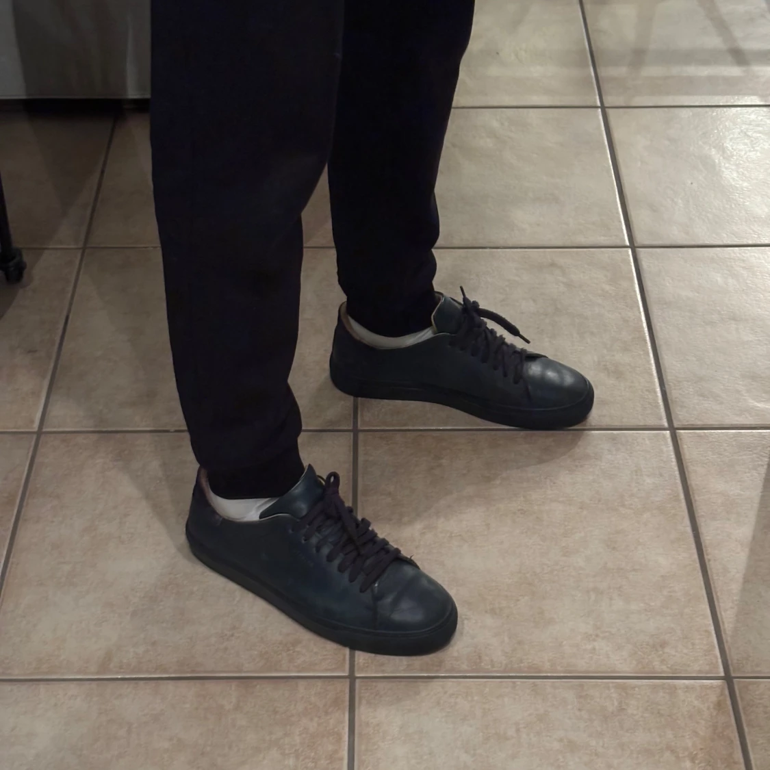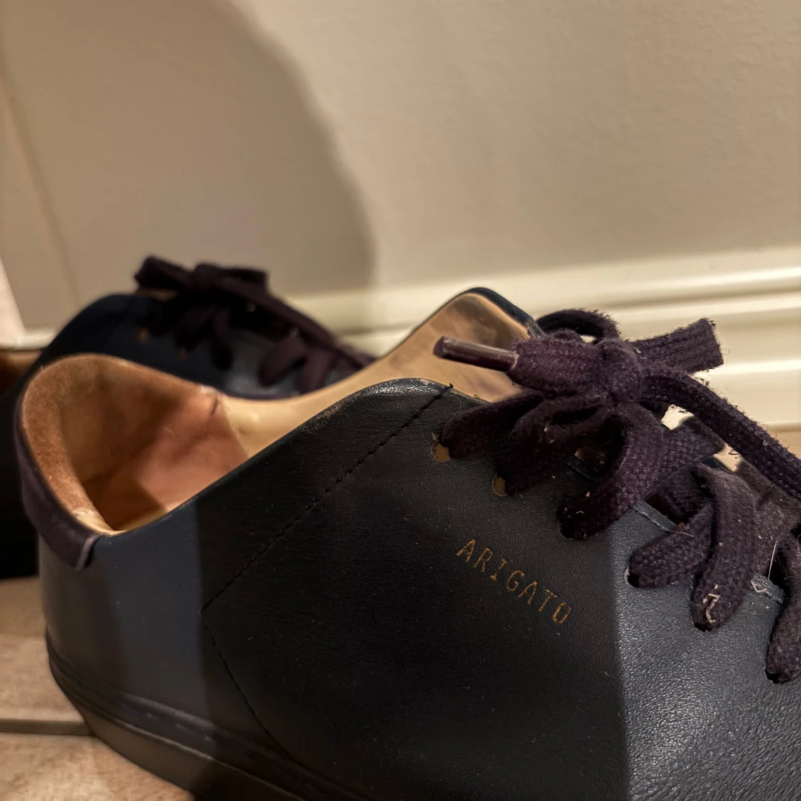 Stilrena mörkblåa sneakers från Axel Arigato i skinn med diskret logga i guld på sidan. Låg modell med och beige insida. Perfekta för dig som gillar minimalistisk och clean stil. Pris kan alltid diskuteras vid snabb affär