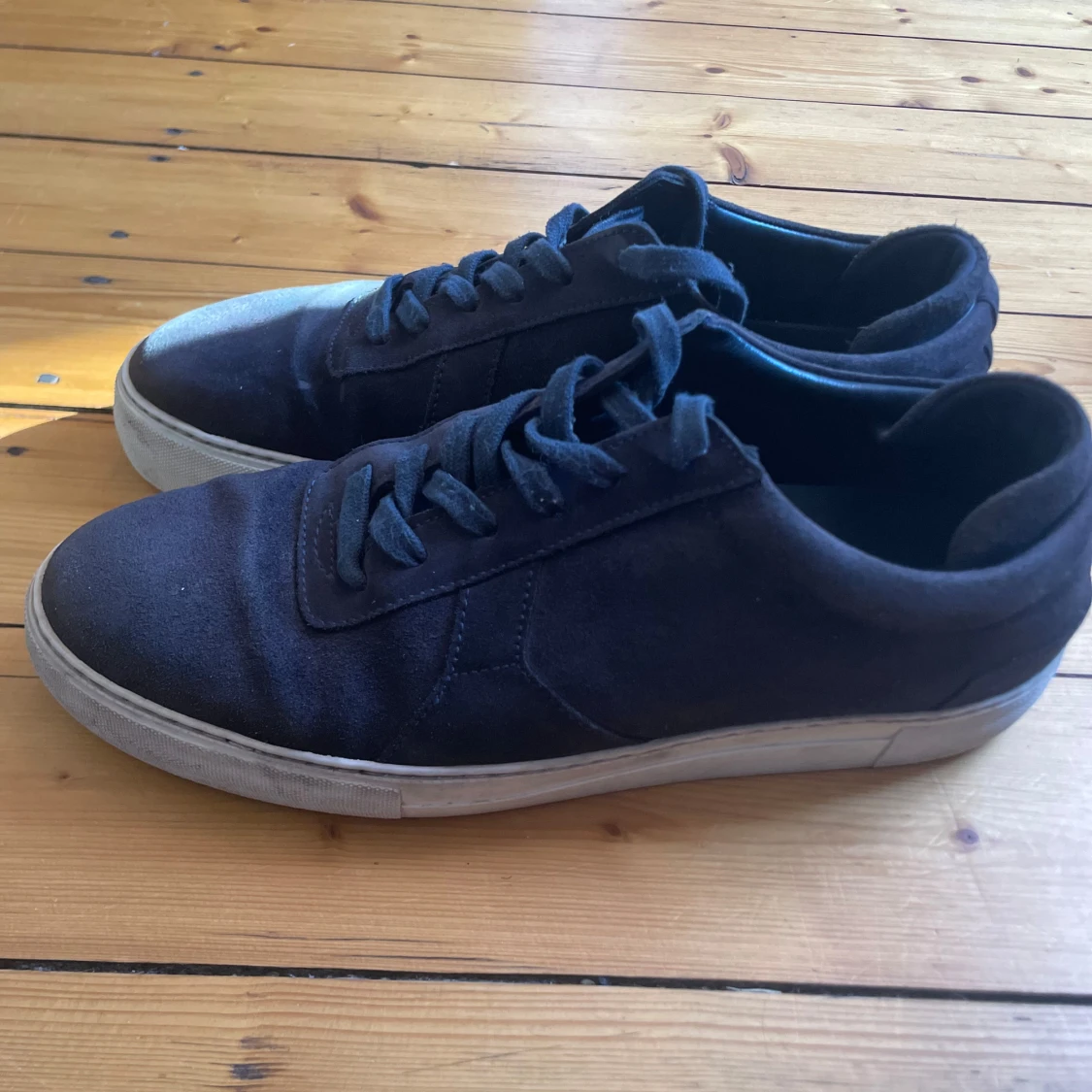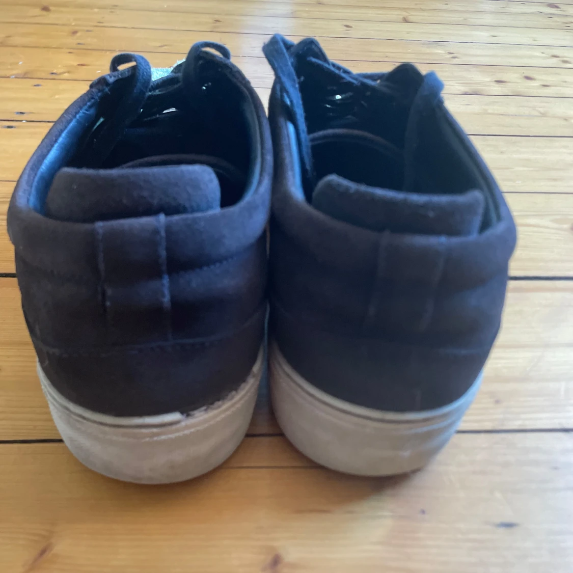 Snygga svarta sneakers i mocka med klassisk låg profil och vit platt sula. Skorna har rund tå och snörning framtill för en clean look. Perfekta för dig som gillar stilrena och enkla sneakers med en mjuk känsla.