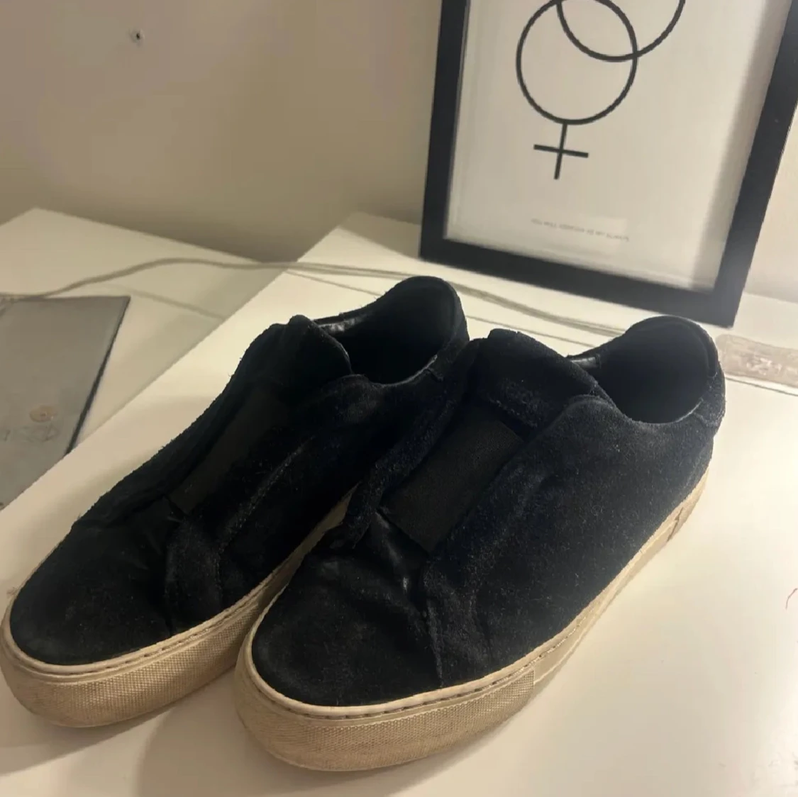 Säljer ett par super fina axel arrigatos! Tvättar dem gärna innan jag skickar☺️ litet ”hål” där nere som inte märks av eller ändrar funktionen av skorna. Dem funkar exakt lika bara och får ej in vatten osv!