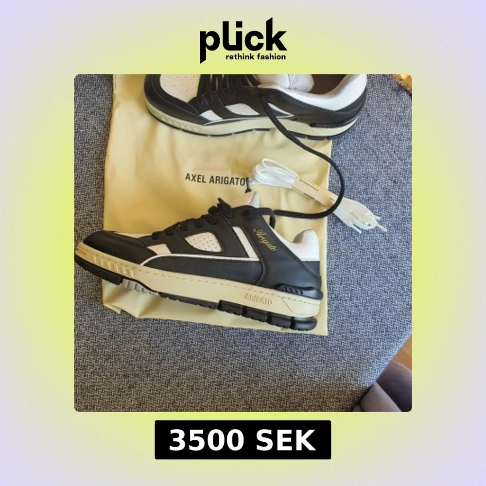 Snygga sneakers från Axel Arigato i svart och vitt skinn med beige detaljer. Klassisk siluett med perforerade partier, svart snörning och extra vita skosnören. Kommer med originalkartong och dustbag. Perfekta för dig som gillar stilrena och trendiga skor.