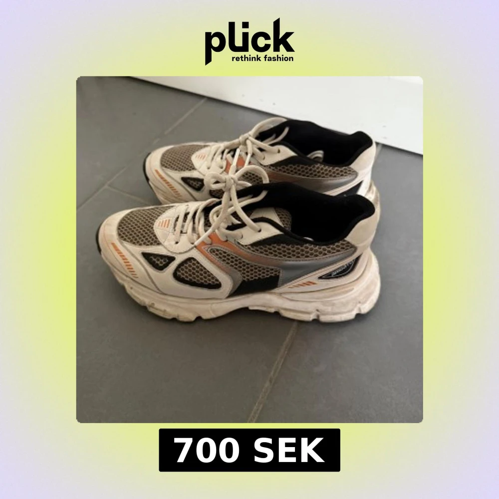 Säljer ett par chunky sneakers från Axel arigato i beige, orange och svart med meshdetaljer och vita snören. Skorna har en rejäl platt sula och sportig design, perfekta för dig som gillar retrovibbar och streetstyle.