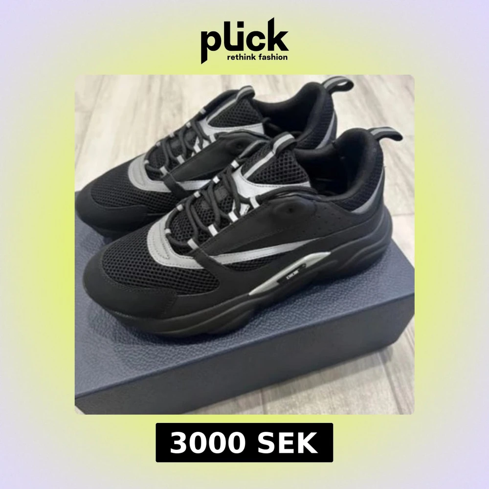 Snygga svarta sneakers från Dior med grå detaljer och snörning. Skorna har en modern design med en robust sula och meshmaterial för extra komfort. Perfekta för en stilren look. Kvitto box allt finns