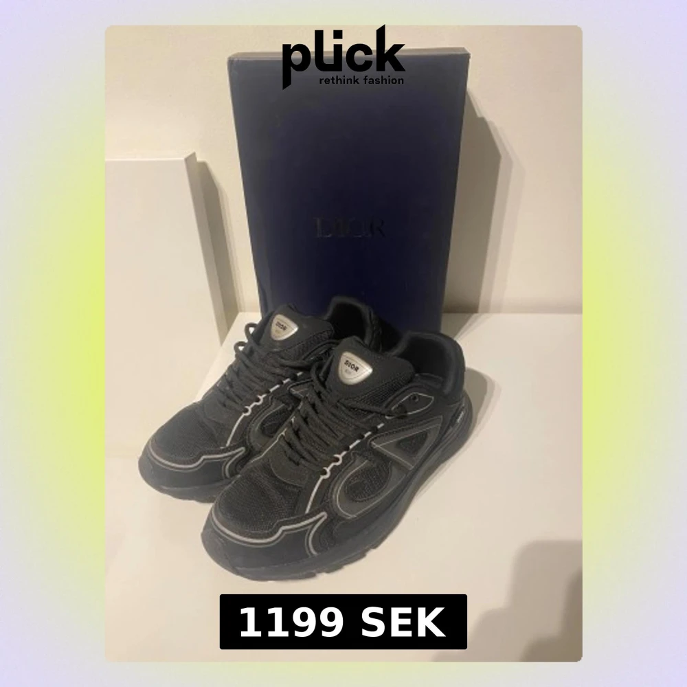 Säljer ett par svarta sneakers med snygga grå detaljer och meshpaneler. Skorna har rund tå, snörning och en chunky platt sula. Märket syns tydligt på plösen och boxen ingår. Perfekt för dig som gillar exklusiva och trendiga sneakers.