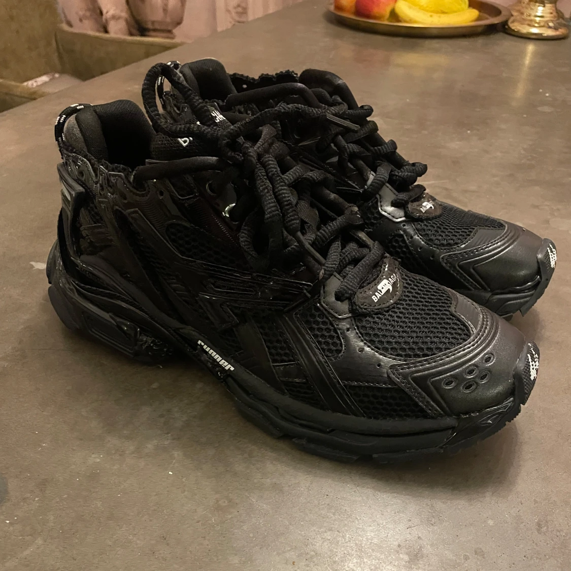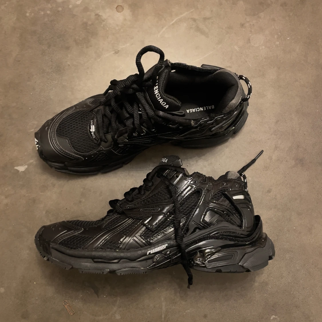 Nästan helt nya Balenciaga Runner i storlek 44. Endast använda vid ett tillfälle - i mycket fint skick. Tillverkade i lätt och bekvämt material. Inga skador eller märken. Passar även dig som har storlek 45. Originalbox finns ej. Säljes då de inte kommer till användning.