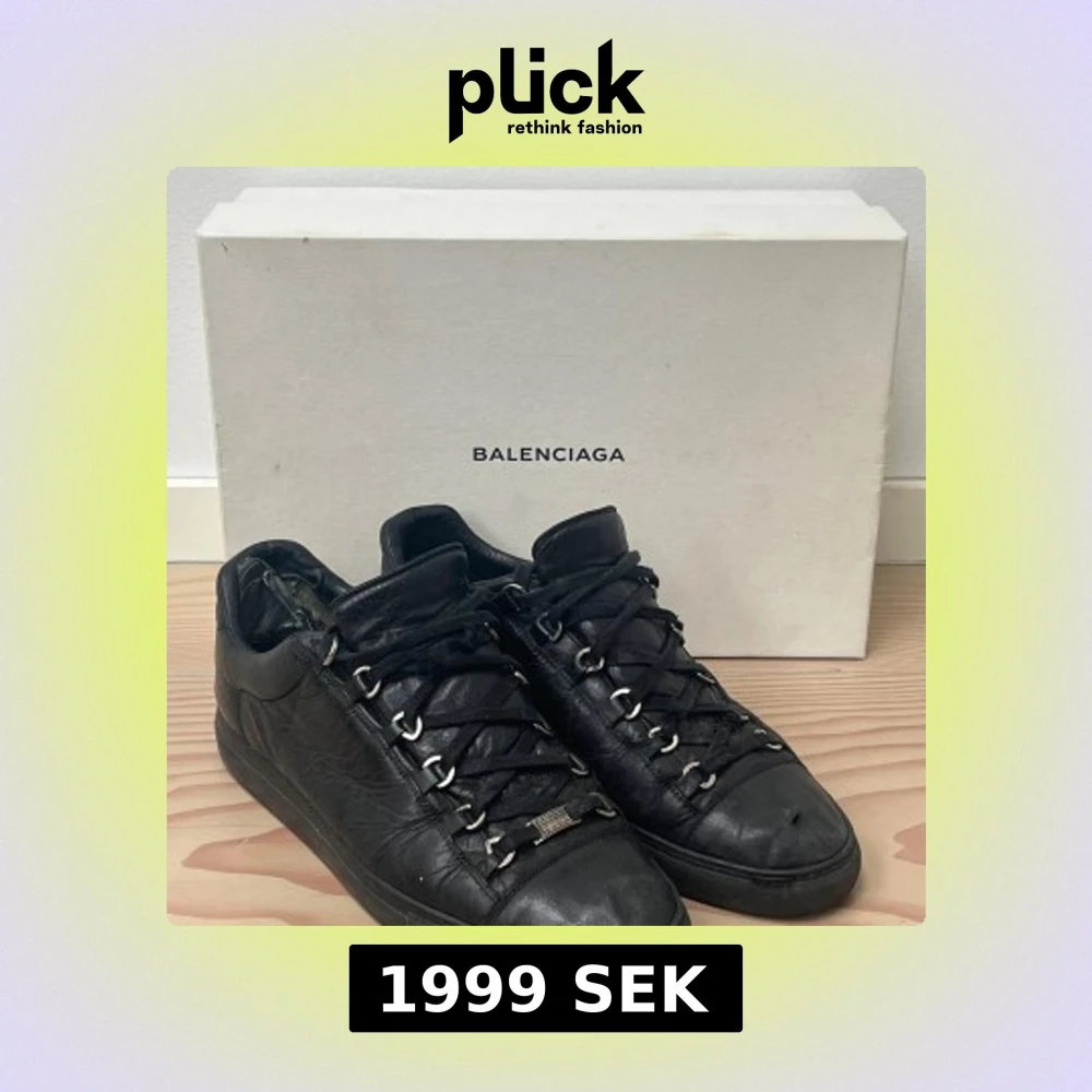 Tjena! Sjukt feta svarta Balenciaga Arenas i storlek 43 men passar 44/45. Box och kvitto nedkommer, samt nya svarta skosnören och nya metallbrickor. Skick som på bilderna. Pris kan självklart diskuteras!