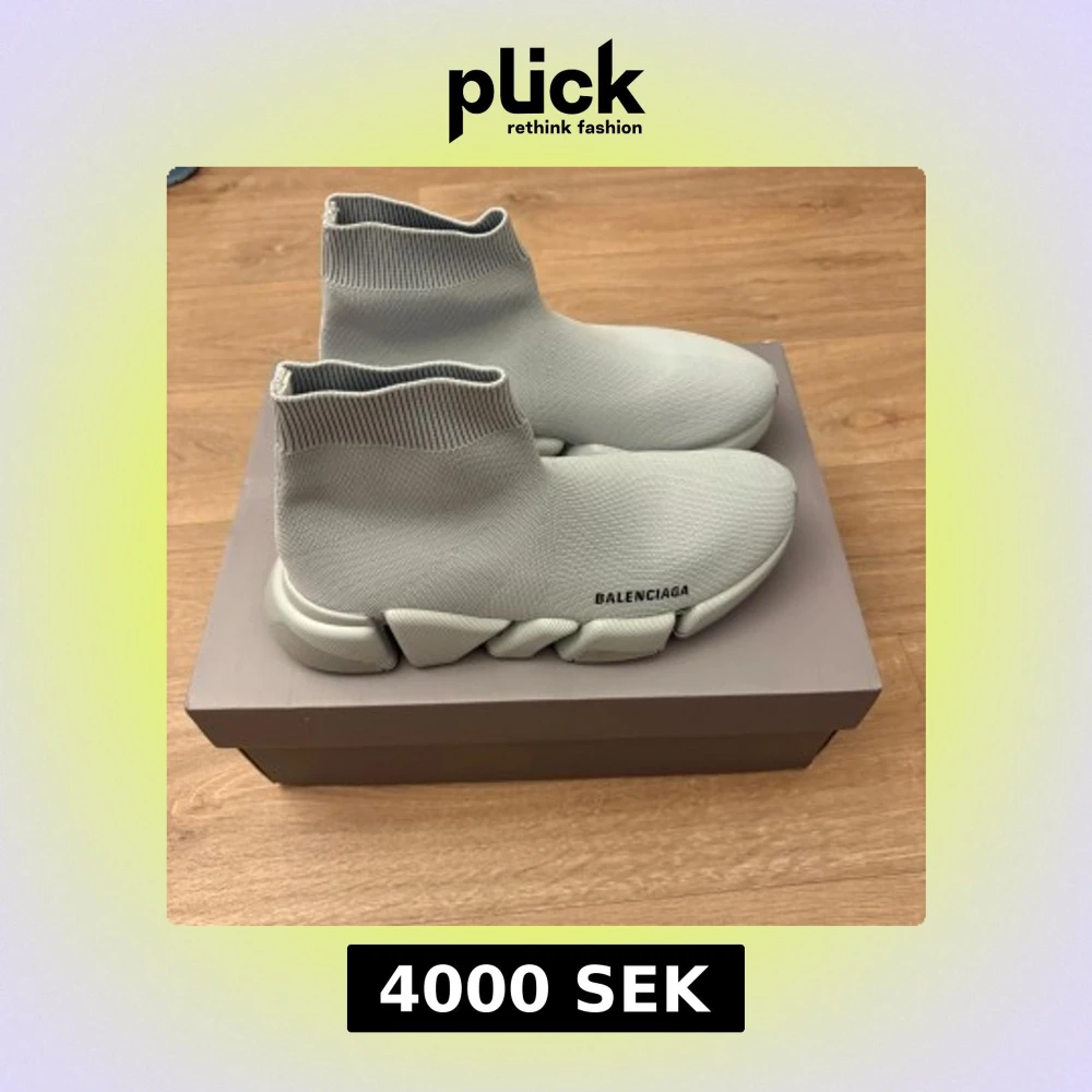 Snygga grå sneakers från Balenciaga med en modern och stilren design. Skorna har en strumpliknande passform och en chunky sula som ger extra komfort. Perfekta för en trendig look.