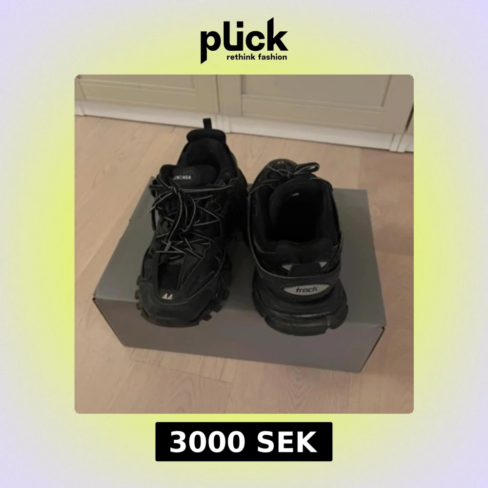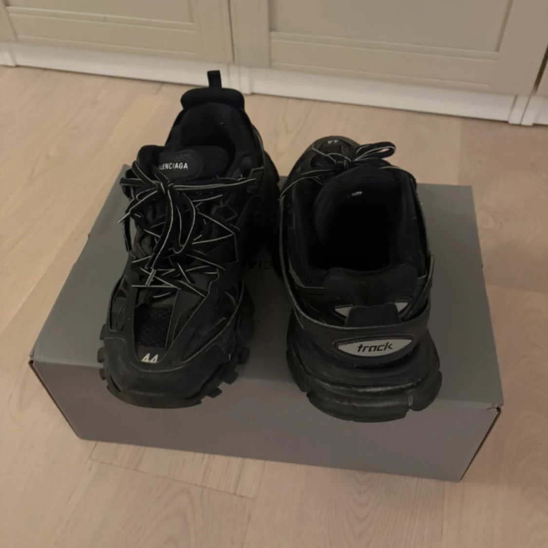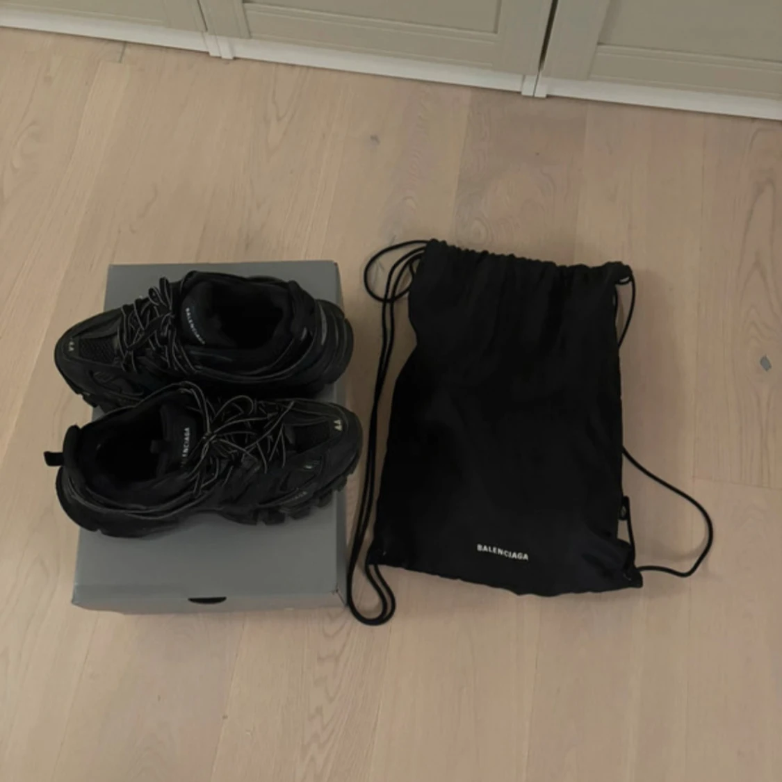 Säljer ett par svarta Balenciaga sneakers i storlek 44. De har en chunky design med snörning och är perfekta för en trendig look. Skorna är i nyskick och har en cool, modern stil.