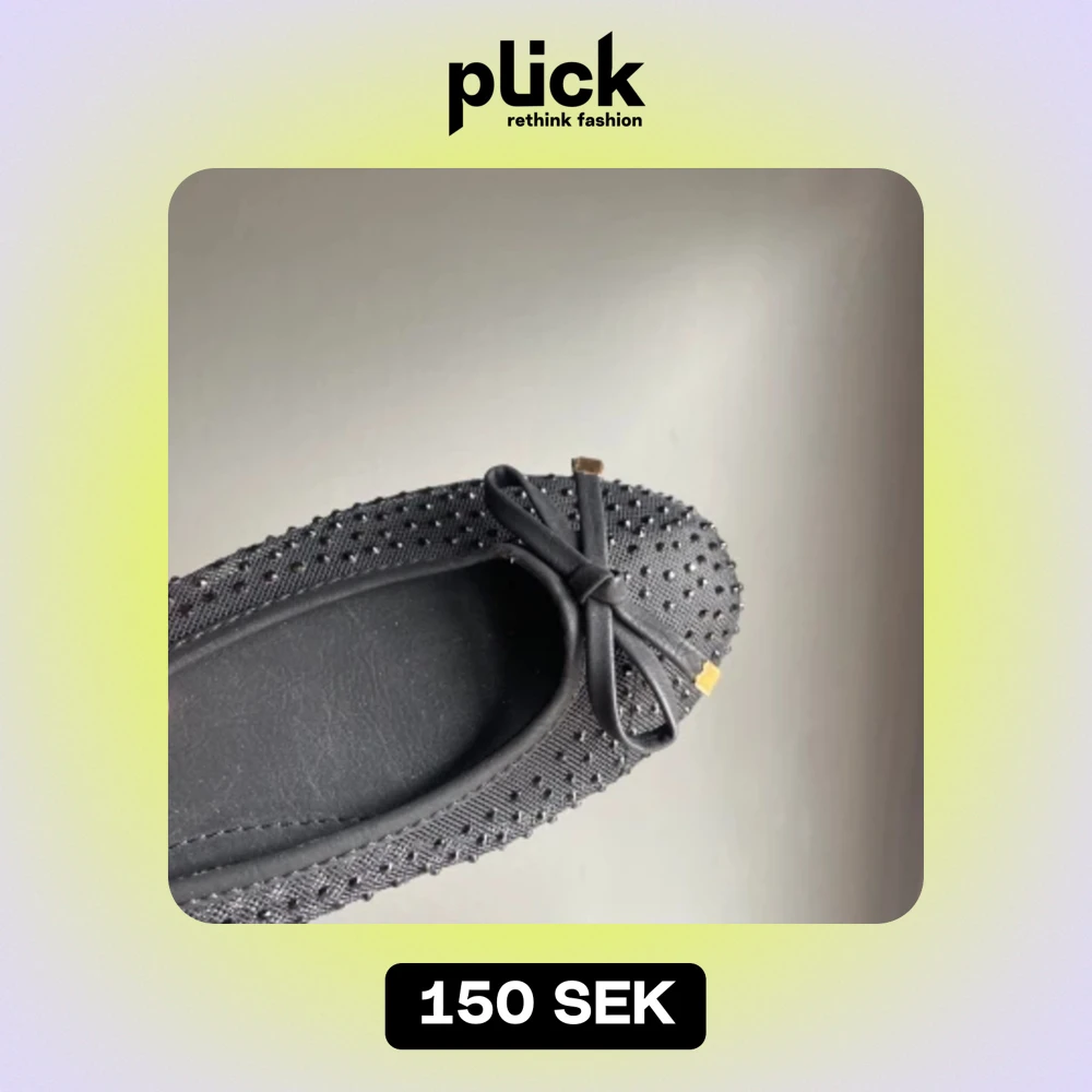 Svarta ballerinaskor i mesh-material med rosett och stenar. Supersöta! Strl 38 några slitmärken