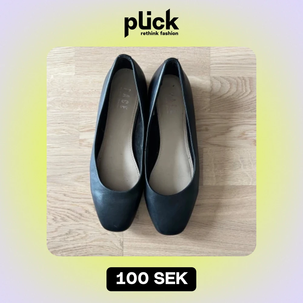 Svarta ballerina i skin imitation. Trubbig spets. Sitter bra på foten och nästintill oanvända.