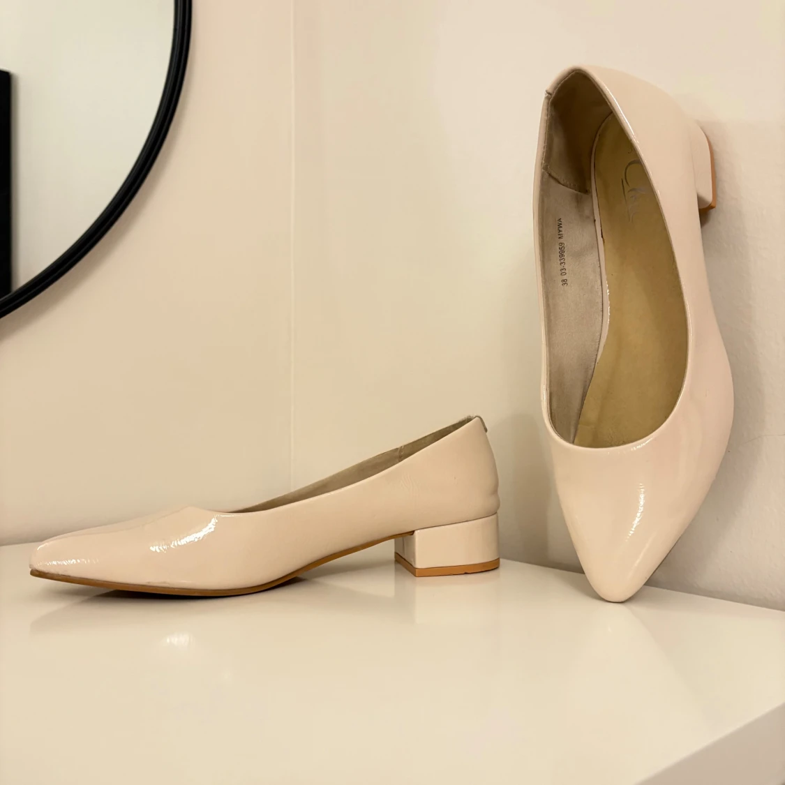 Säljer dessa fina skor från Clou🤍Supersöta ballerinaskor med klack som jag köpt begagnat men som aldrig kom till användning. Ytligt har de lite tecken på användning men det är inget som märks när skon används. Skriv vid frågor🥰