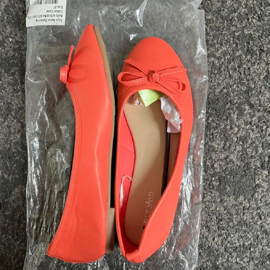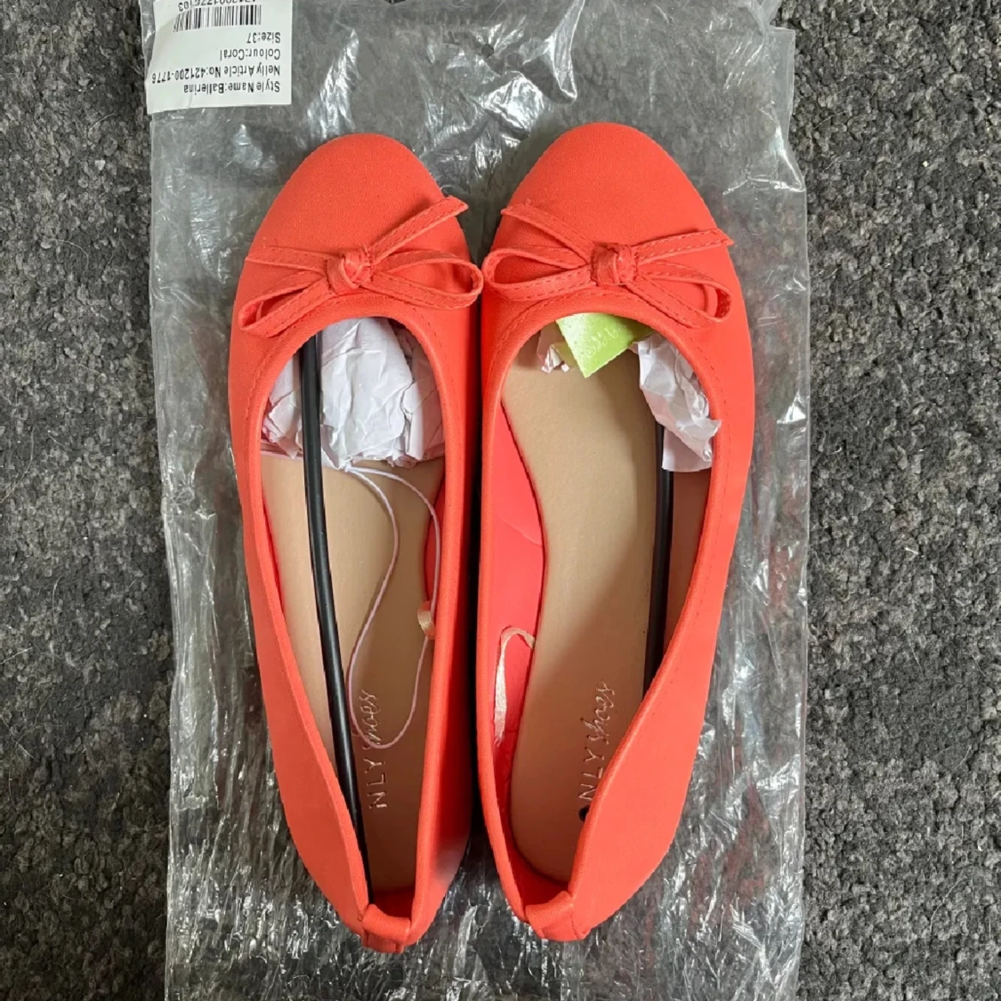 Corallfärgade ballerina skor. Köpta på Plick men endast testade då de var för små. Slutsålda och köpta från Nelly från början!