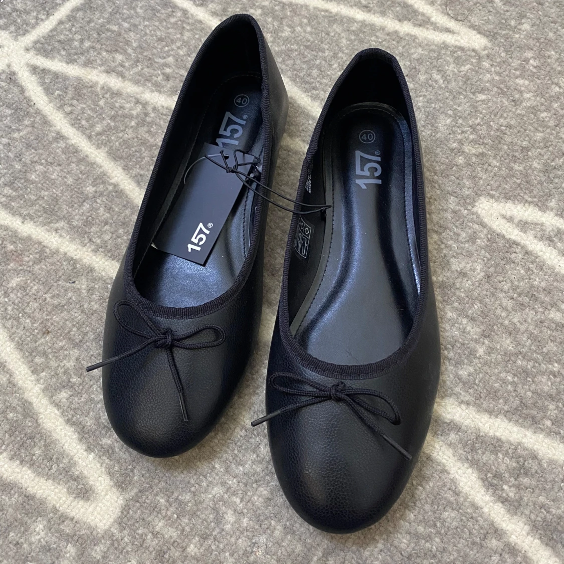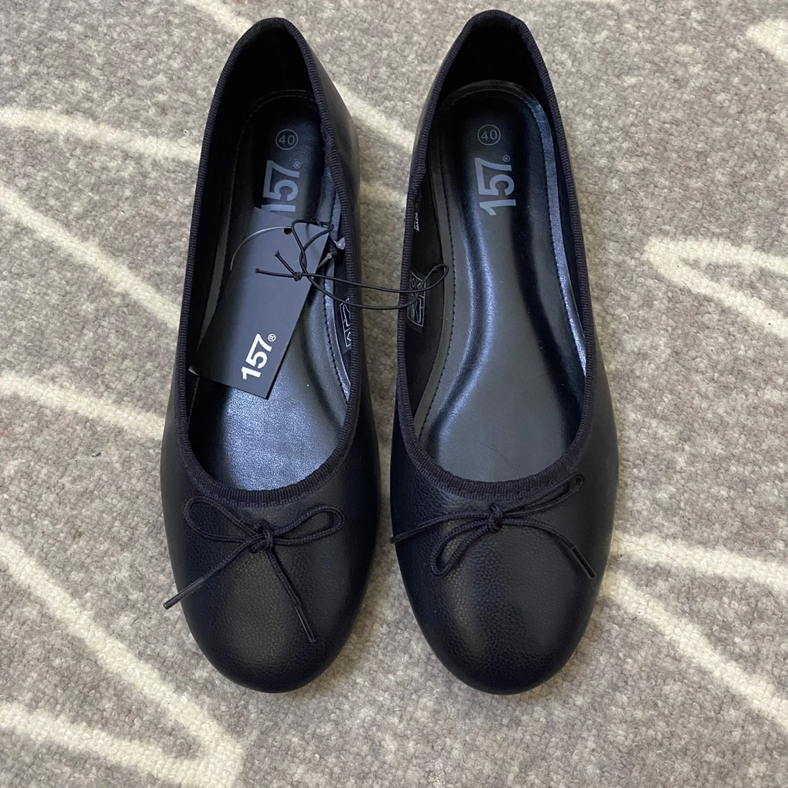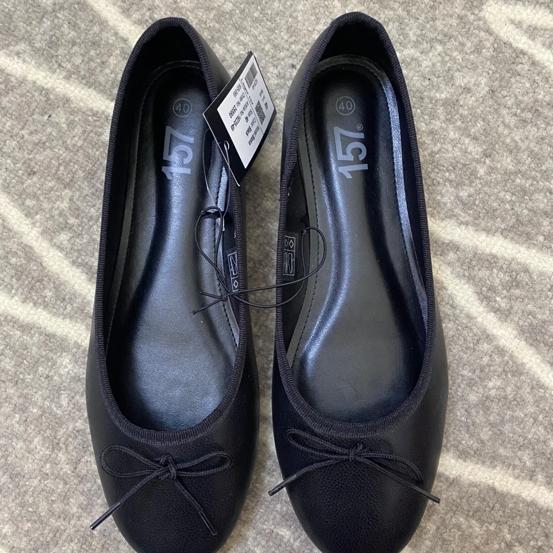 Stilrena svarta ballerinaskor- helt nya och oanvända. Bekväma skor och fin form- storlek 40. Säljes pga fel storlek.