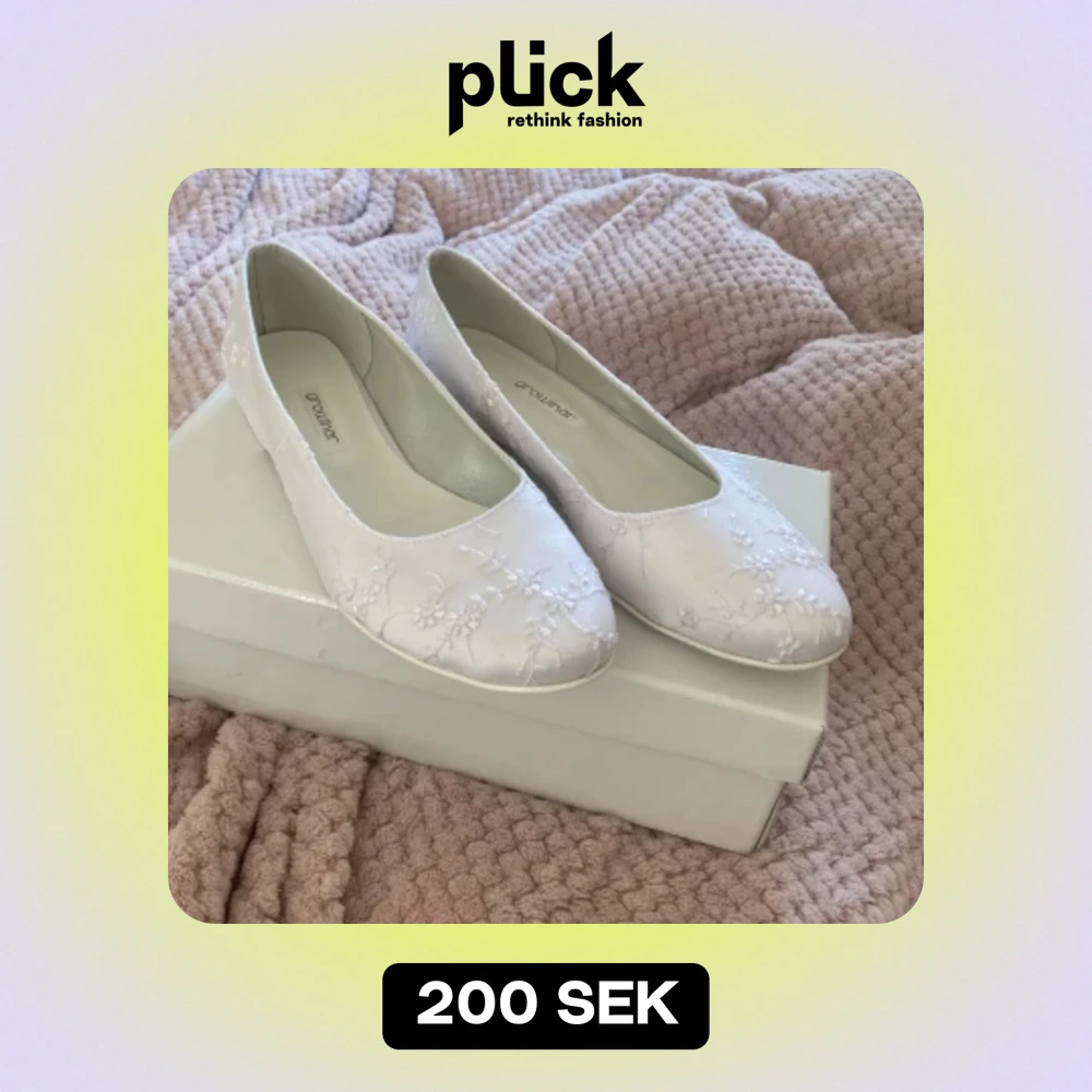 Söta ballerinaskor med unikt broderi på! Aldrig använda endast testade, tänkte ha till studenten men de var tyvärr för stora för mig. Skriv i DM om ni har några frågor 💗