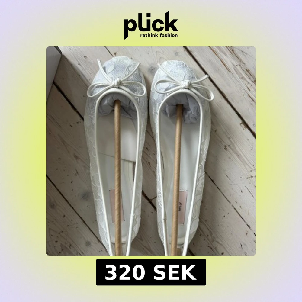 Snygga vita ballerinaskor från Nelly med spets. Helt nya, bara testade. I orginal förpackning! Säljes då det är för stora! Originalpris 349kr. Storlek 38 men skulle säga mer 39/40!