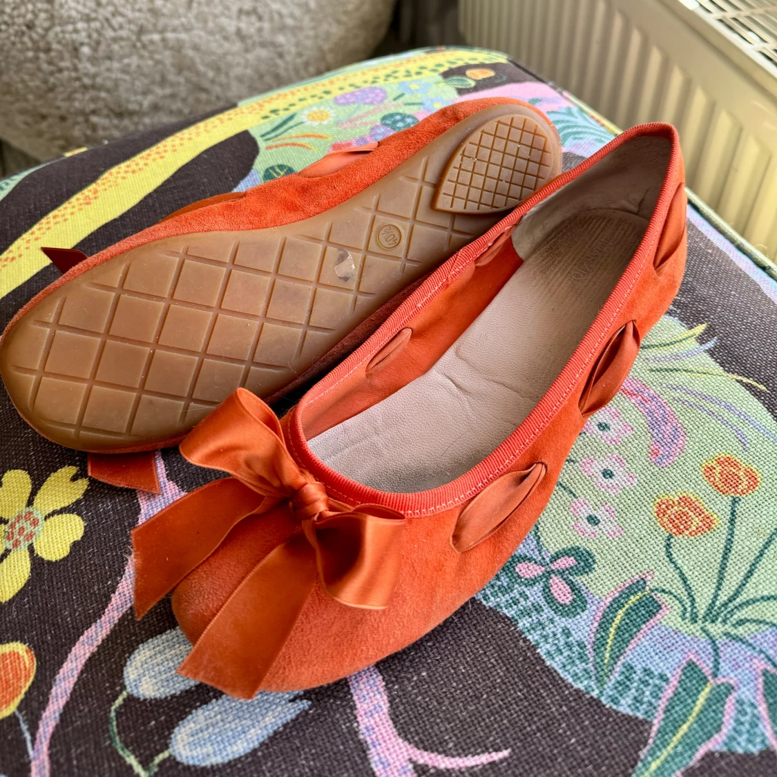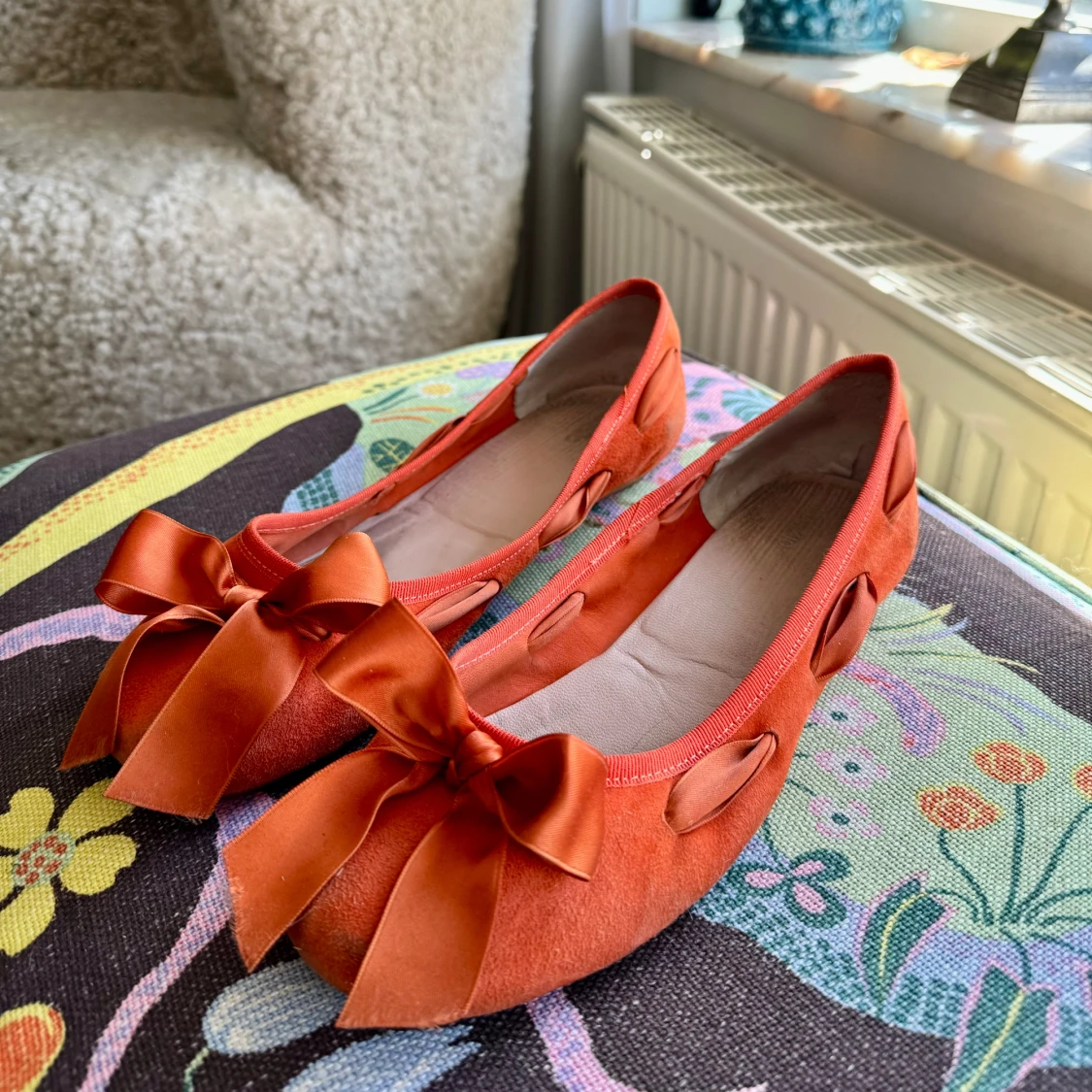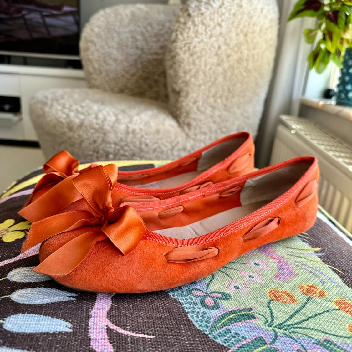 Ett par supersöta ballerina i mocka! De är använda men går att fräscha till🧡Storlek 40 1/2 men snarare som en 39/40!