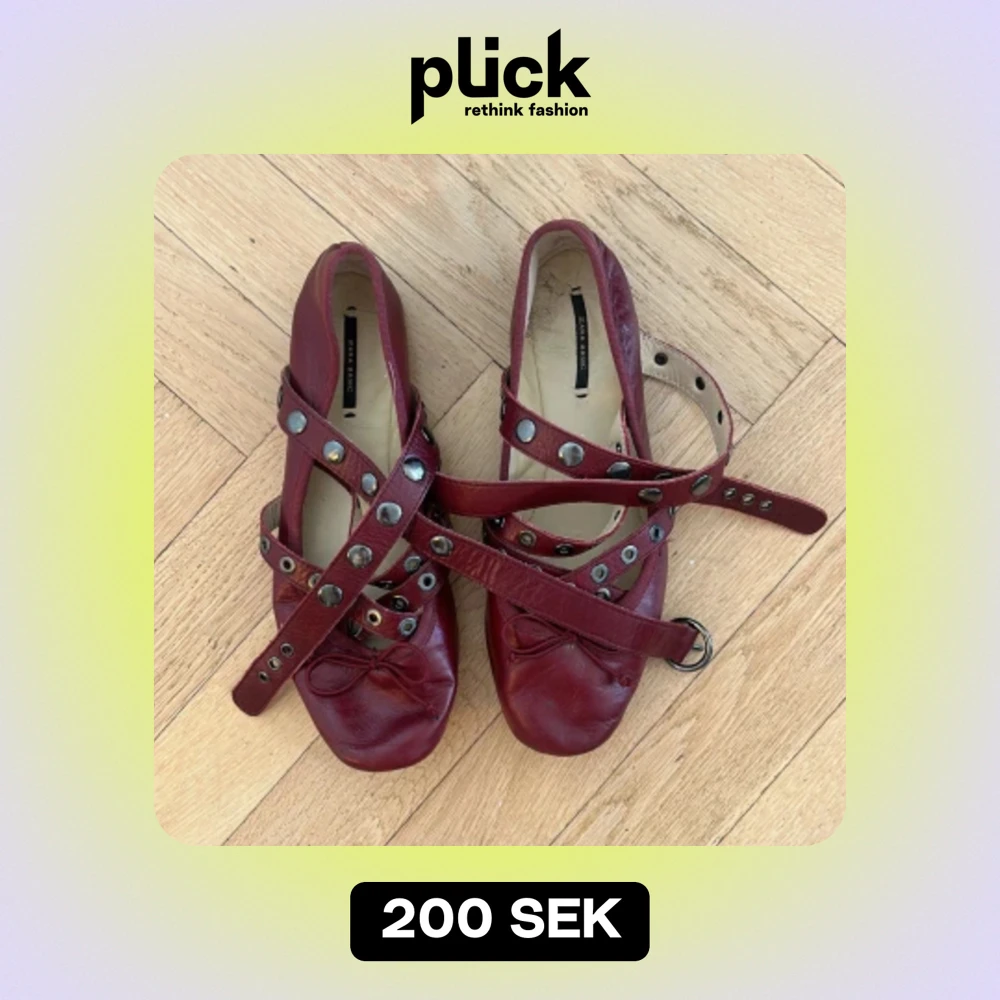 Säljer dessa röda ballerinaskor med remmar för att den är för små.