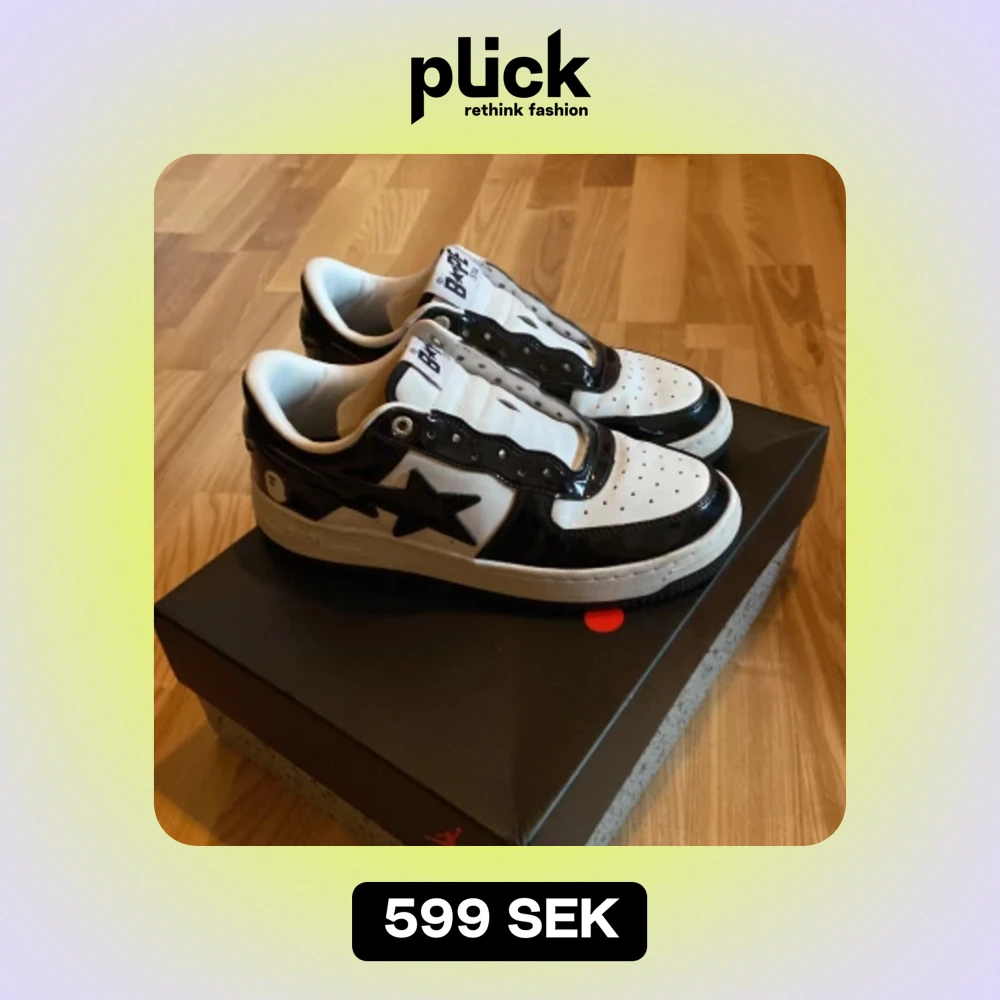 Riktigt snygga svart-vita bapestas som ej används längre. Skick 7/10, använda men ej särskilt slitna. Allt OG utom låda medföljer. Skorna är strl 39 men passar mig som har 41. Pris kan diskuteras. Skriv om du har frågor eller vill ha mer bilder! : )