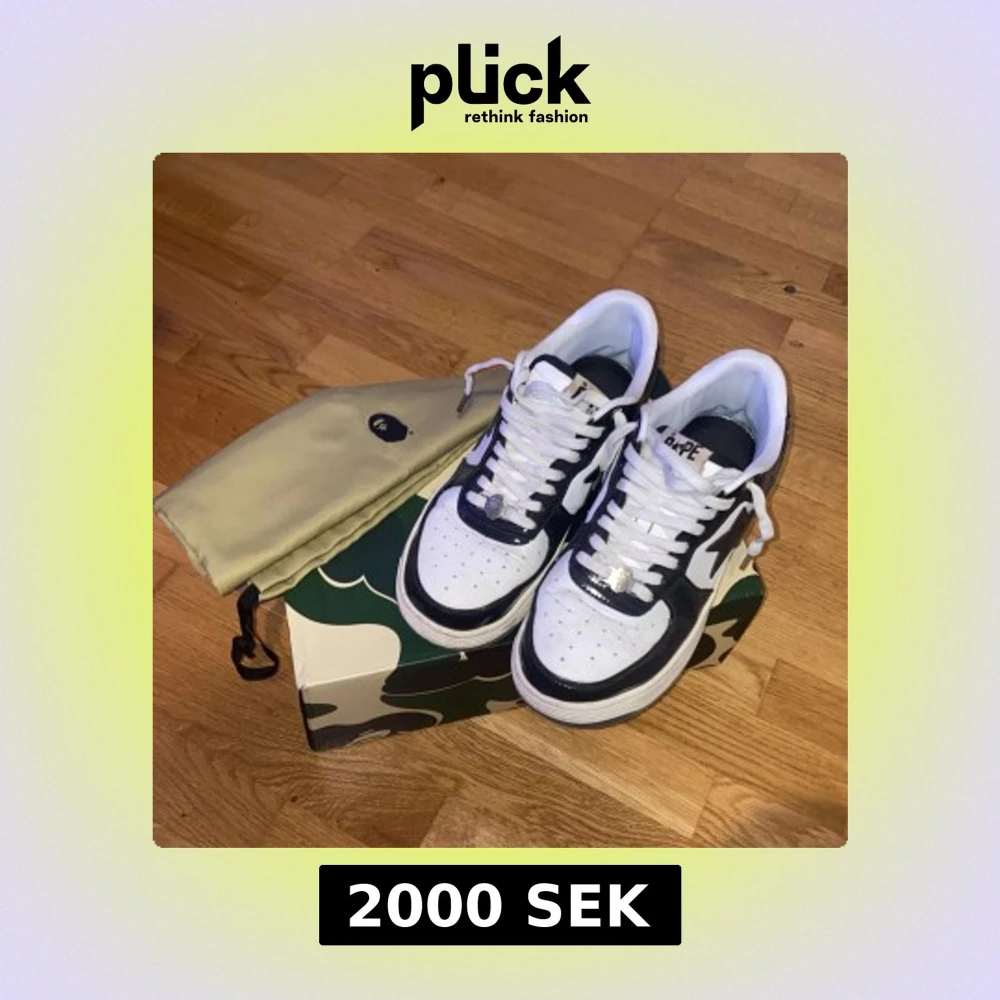 Säljer ett par Bapestas i svart och vitt. Använda ett par gånger/ Bra skick. Box och tygpåse medkommer. Storlek 44. Pris kan diskuteras✅.