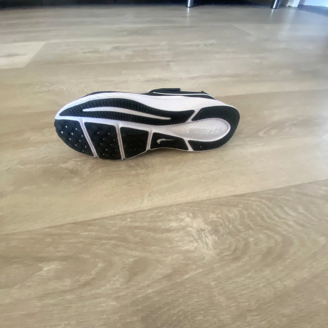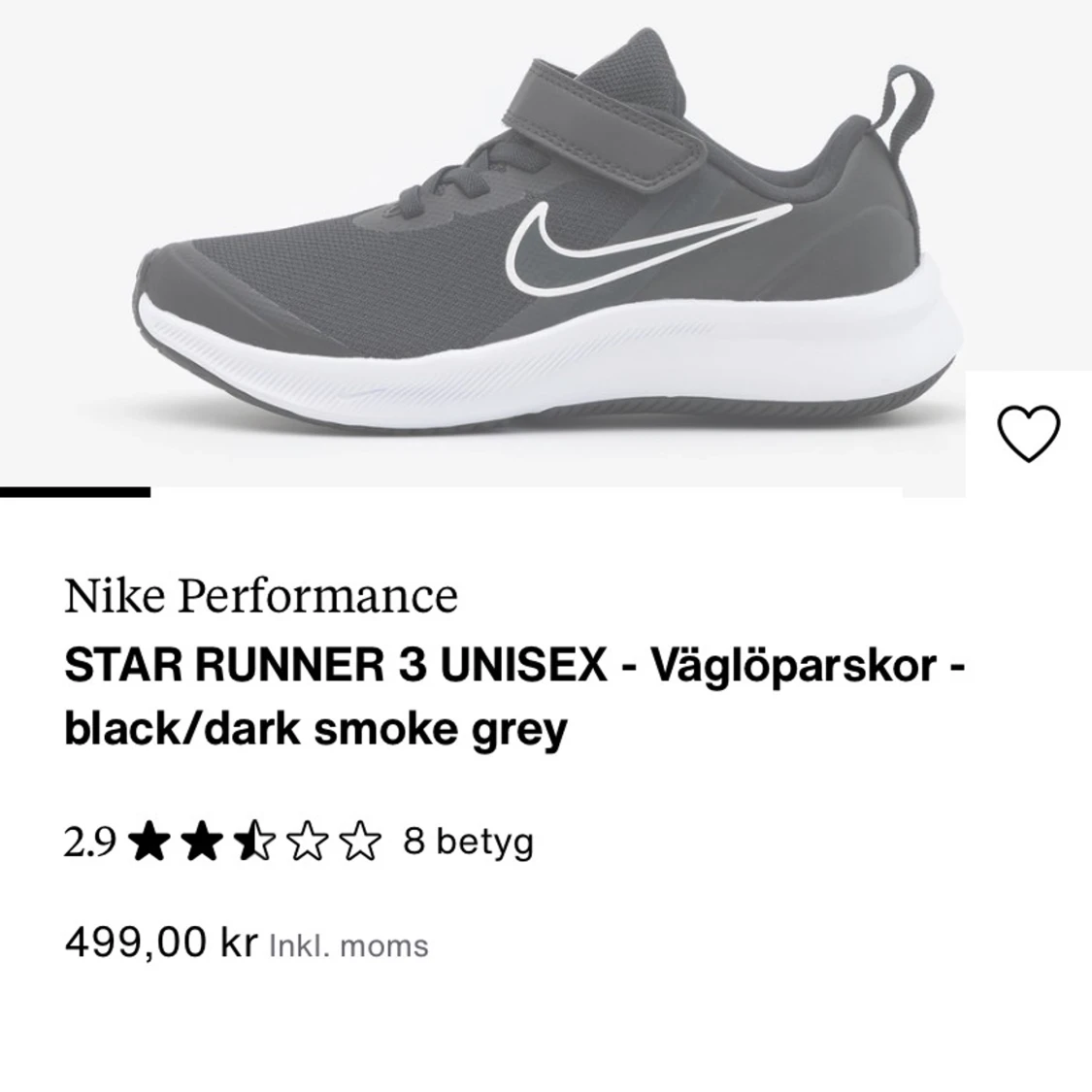 Snygga och bekväma Nike Star Runner 3 unisex löparskor i svart och mörkgrått. Skorna har en vit sula och en ikonisk Nike-logga på sidan. De är utrustade med snörning och en praktisk kardborreband för extra stöd.