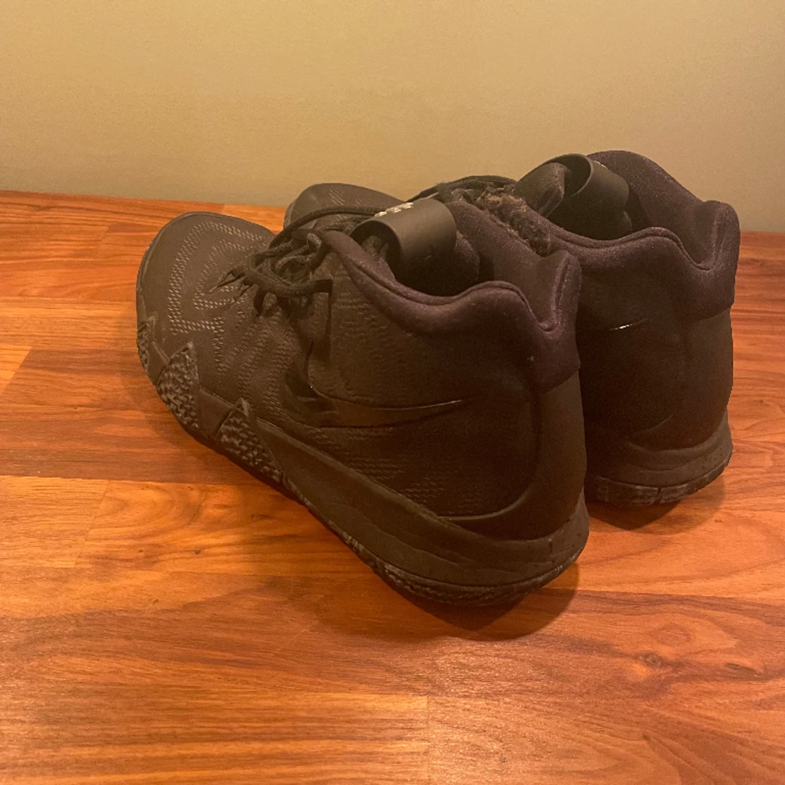 Tja säljer ett par kyrie 4 blackout som är knappast använda Nya kostar dom ca 5000kr jag säljer dom är 1500kr Skriv gärna för fler bilder PRISET KAN DISKUTERAS